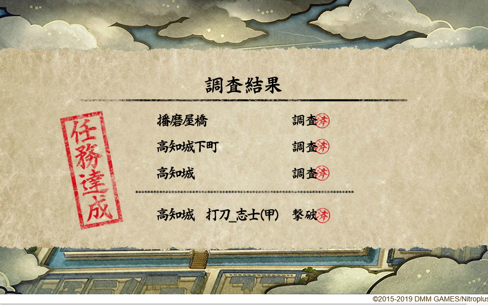 でも、ボスを倒した後に、中断を選んでいったん本丸へ戻ると