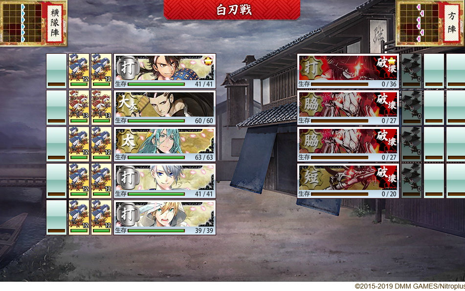 レベルは陸奥60、寧々斬丸52、千代金丸73、山姥切両名72。