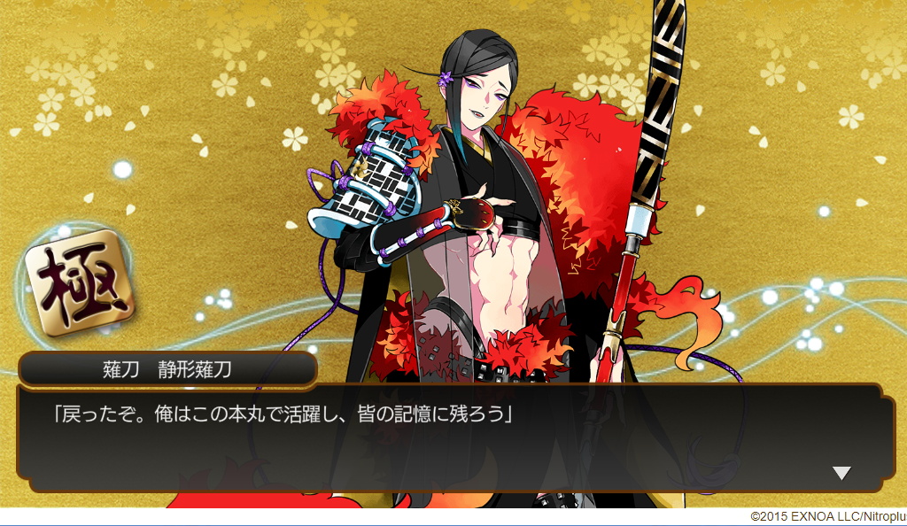 5/3慶長熊本で静形がカンストしたので、修行に出しました。