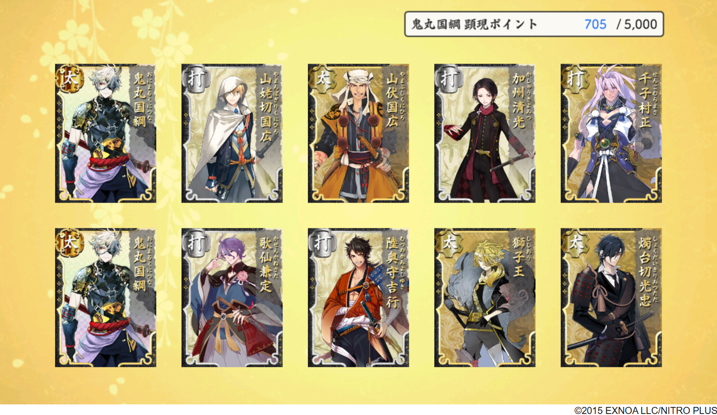 2/25 近侍:加州くん。まずは梅札、竹札、松札、藤札を使って1回ずつ。これは儀式なので。