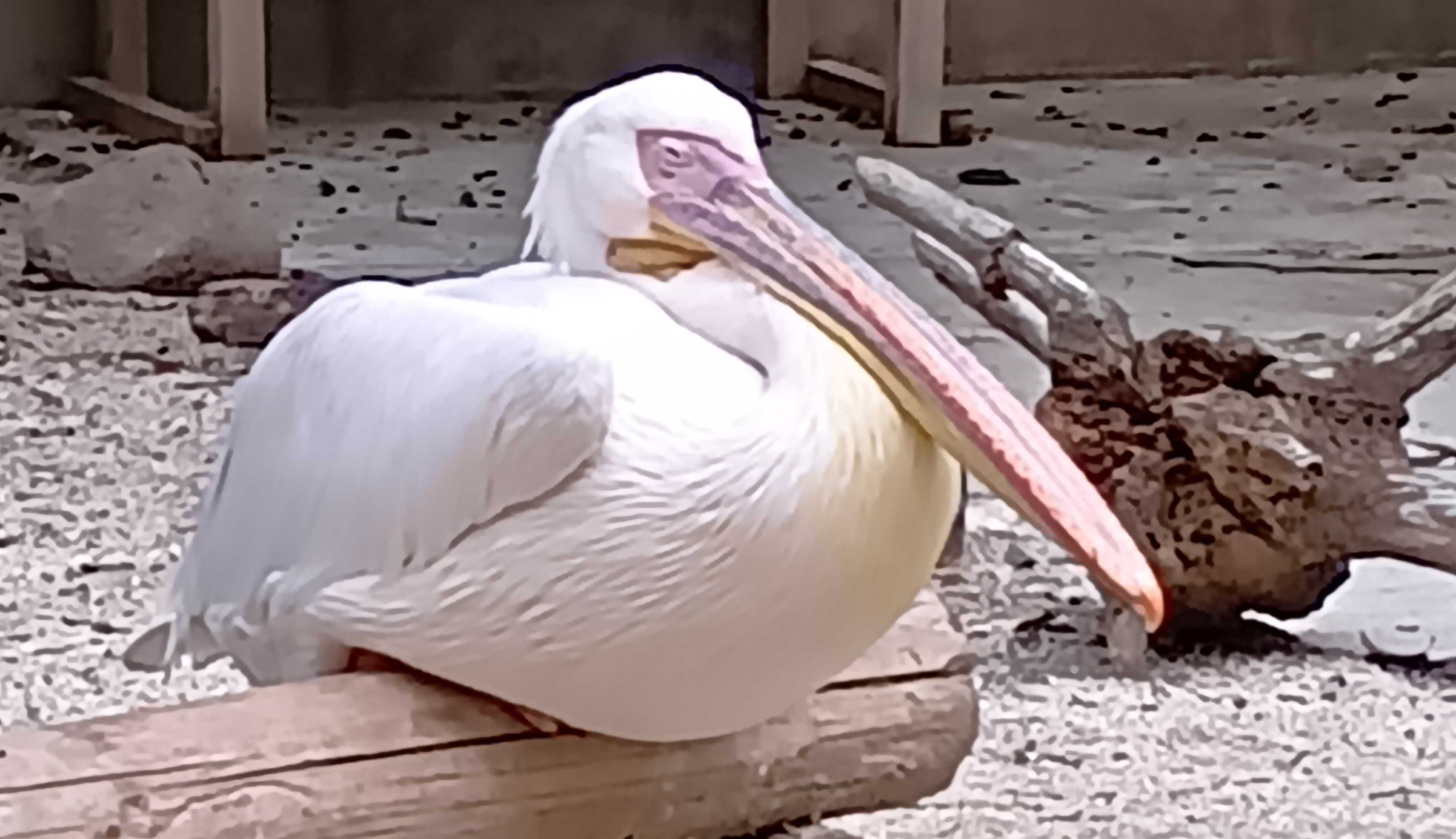 リスザルと同じ場所にいたペリカン