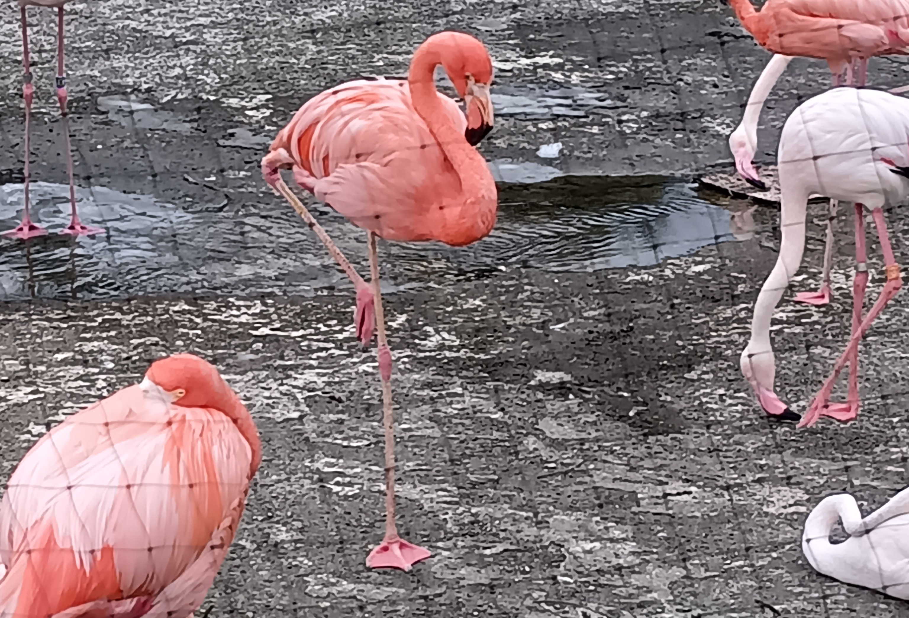 絵に描いたようなフラミンゴ立ち。
