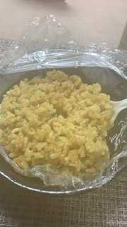その上に冷凍ライス そしてラップをして チン♪