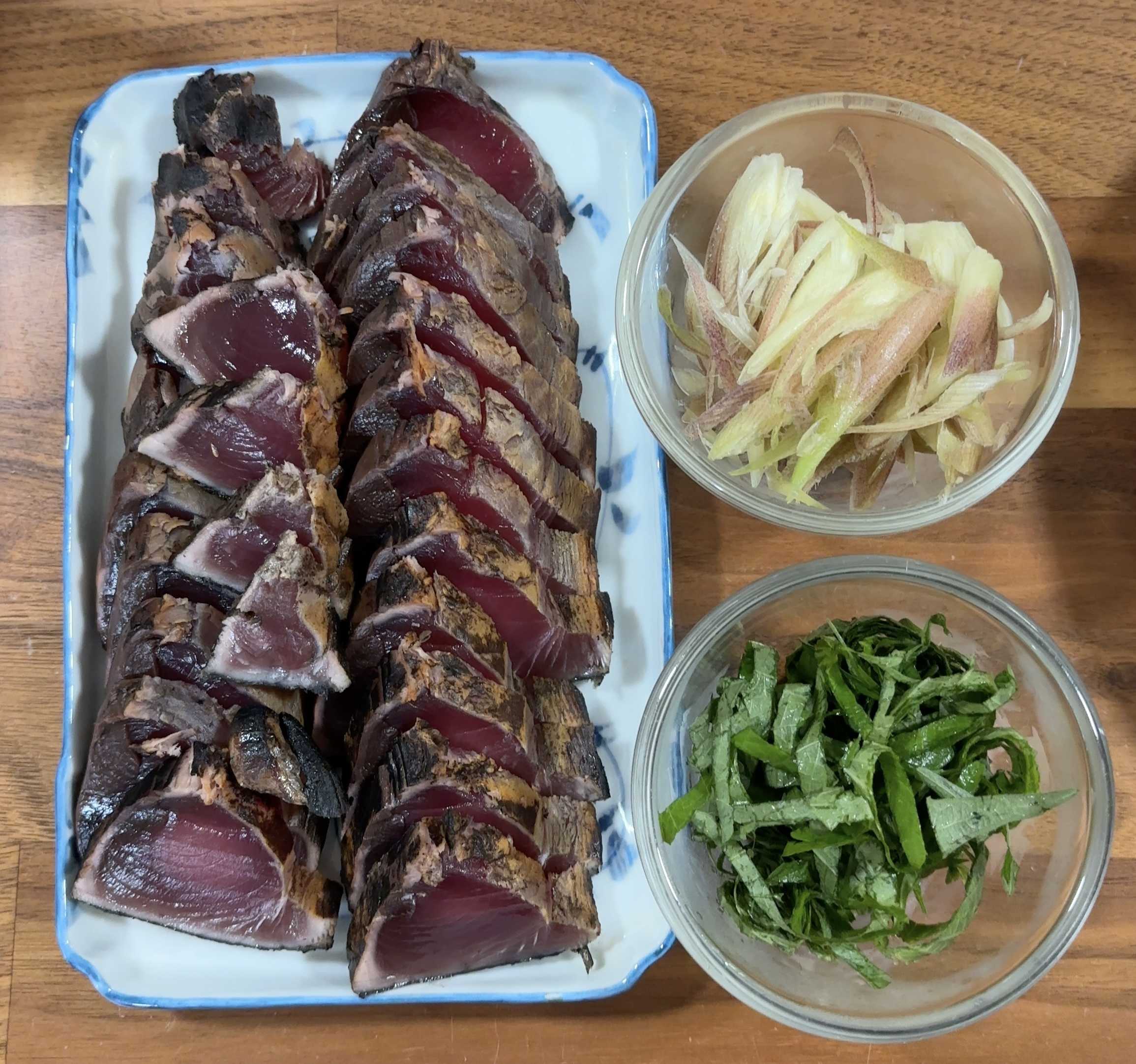藁の香りが素晴らしい 薬味も揃えてくれました