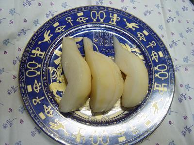 家族は 「桃と洋ナシの間の感じ」 と表現していました。ほんとに 洋ナシとは違う! でも、皮付きはほんの少し皮の渋みを感じたので残りは皮を剥きました。