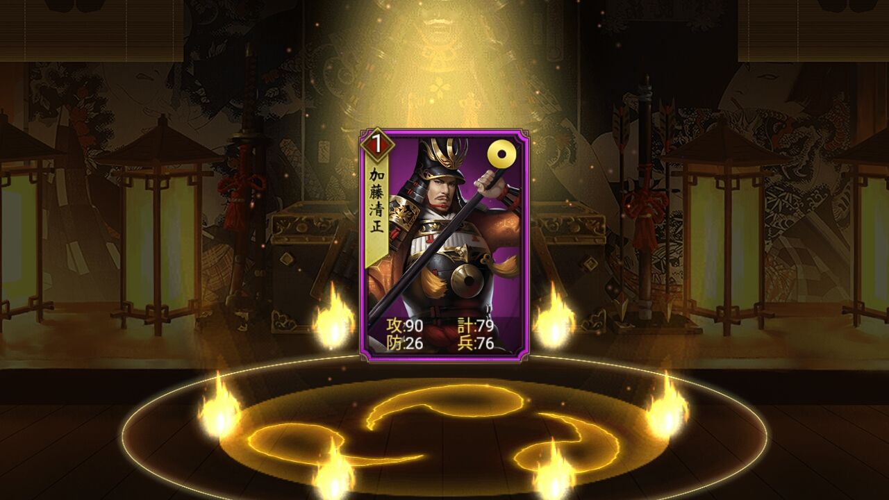 戦国布武。特別登用で加藤清正キター!加藤清正、色んな使える武将と連携スキルが良い。竹中半兵衛と居れば回避15%蜂須賀小六と居れば物理防御+30%藤堂高虎と居ればダメージ+20% など出来れば 侍大将の時に会いたかった武将。福島正則と一緒に出陣させたかったし・・・。まあ贅沢は言うまいて。また頑張って武魂貯めて、育てないとね。。。竹中半兵衛と蜂須賀小六、藤堂高虎と一緒がいいなら、また新たな軍が作れそう。。。まだ先の話。。。・・・尼子勝久、星2にしました。