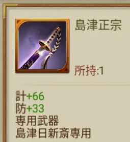 戦国布武。一周年記念で貰えたSSR武将パック。ひいてみたら官兵衛被りで神器になった・・・。草薙の剣。ま、まあ武魂にできると思ったら良い事だよね・・・。女官兵衛が来るかと期待しちゃったけど・・・。神器って、覚醒する時に要るみたいだけど、武魂に変えるのかためらってしまう。でも少納言からなんだよな・・・。当分関係ないと思ってたけど、大史の次が少納言か・・・。このまま大史を抜けて少納言にスムーズにいけるとは思ってないけど、どうすべきか・・・。ここの所、戦局の中で勝てずに悔しい思いをしたとき、進化させて戦いに向かわせたい衝動に駆られる事があるので、とりあえず使わずに取っとくか。・・・そういえば、三好長慶は、現在星3つまで進化させました。三好長逸も、戦いの最中、増援として送りたかったので急遽星2まで上げてます。どちらもはよ星5まで上げて毛利勢の強化に入りたい。。。
