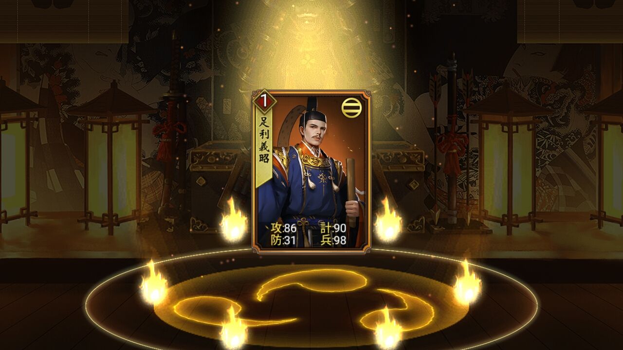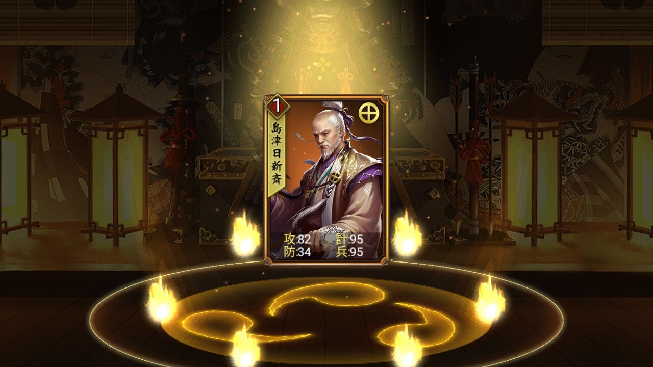 戦国布武。じいちゃんキター!!!ついに来ました、我らが島津日新斎。欲しかった島津家待望のキャラです。物理チームも小史レベルまでは進化を終えてるので、最優先で進化させちゃうよ~。あー武器の橙軍配が無かったな、また貯めないと・・・・・・と思ってたら、専用武器getしてたんだった。前回の更新を見て思い出した・・・タハハ。。。いやー長かったな~。これでようやく特別登用の地域を畿内に変更できる・・・。次は豊臣狙いだ! 足利義輝も欲しいな~。しばらくは島津隊の編制に悩む嬉しい悩み。うひひ♪