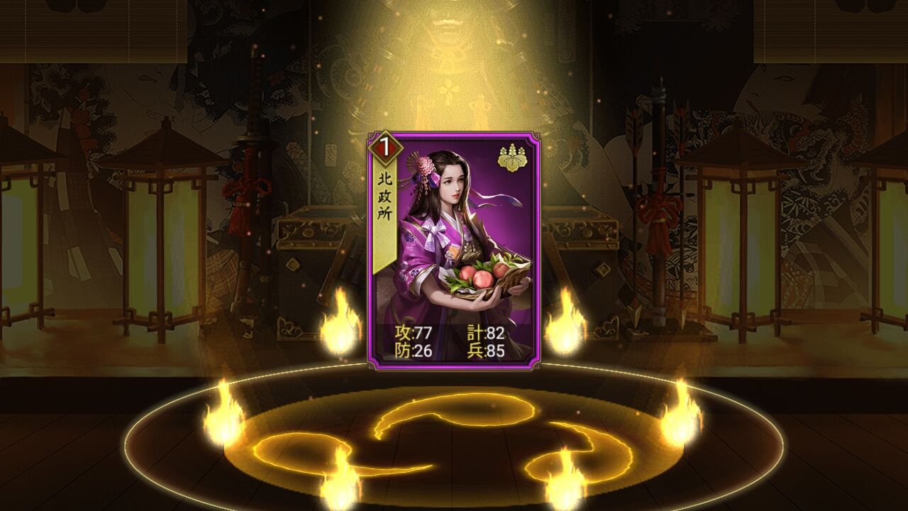 戦国布武。北政所が来ました。期待・・・ハズレ。スキルがビミョーだ・・・。合戦などで実績がないからわからんでもないが、前田まつさんとの差が激しすぎる・・・。まつさんと同じくらい戦国時代では重要な立ち位置にいた人のはずだが、前田家を残したまつさんと崩壊した豊臣家との差なのか・・・?物理チームの7人目以降で使えなくもないかも、だけどそのうち副将要員かな・・・。・・・・・・・・・!仲のよかったまつさんの、副将にしよう。