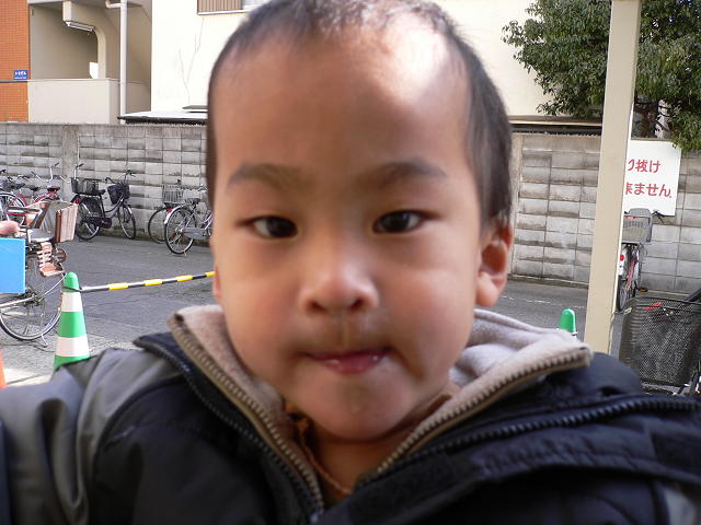 午前中、公園へ。他の子に影響され遊具の階段を登ったりしたけど、怖くなって両手を広げヘルプをアピール( ̄▽ ̄;;結局、10分ほどしか遊ばず。いったん家に戻り、また外出。近所をぶらぶら。久しぶりに室外機をあちこち見て、人の家に乱入したり。ママはわざとりうたんの側から見えない位置に隠れてみました。すると、すぐママがいなくなったと思って探したり。これは意外な行動。今日は暖かくて、厚手のコートは要らないくらいの陽気でした。2時間ほど散歩すると少し汗かきました。たこ焼きをおやつに買って帰りました。りうたん、ここのたこ焼きがかなり美味しかったらしく、食べ終わった後も、もっと食べたいって感じで「うおおおお~ん」と、泣き叫んでいました。お散歩中の一枚です♪