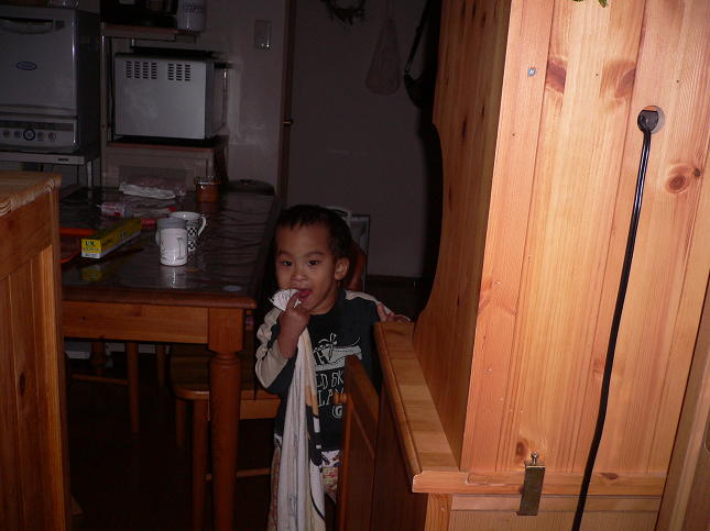 今日もベル当番のパパはお昼頃呼び出され、仕事に行きました。りうたんは仕事の支度をしているパパをジーッと見つめてなんだか嬉しそう?パパが出かけると、嬉しそうにテレビの部屋におもちゃを持って行き遊び始めました(^^;今日も一日家で過ごしました。完全に寝正月です(爆)そんな一日の様子は。。。りうたんはダイニングの椅子を食器棚まで持って行き食器をジーッと見てました。ママはその間、用事をしてました。用事を済ませて戻ると、食器棚の円形の皿(ケーキ皿。ディナー皿など)だけをきれいに積み上げていました!!( ̄□ ̄;;)楕円形の大皿、コーヒーカップは見事にダイニングテーブルに置かれてました。ママ、背筋が凍りつきました( ̄▽ ̄∥)なんせ、ナ○ミやウ○ッジウッドの食器ばかりやられてたもので・・・。丁寧に扱ってくれたので?まぁ、よかったのですが。最近、好き嫌いがまた出てきました。好き嫌いというか、同じ野菜でも調理法が変わると全く食べない。特に、ブロッコリーはゆでてマヨネーズかけたのが一時好きだったのに今はグラタンなどに入れないと食べません。今日はオムライスの付け合せに人参グラッセとブロッコリーの塩茹で。ブロッコリーを残し、席を立とうとするりうたん。すかさずママは「ブロッコリー食べてからごちそうさまして!」と、いうと両手を合わせ「うにょよ」(?)と、言い脱走~。初めて両手を合わせ「うにょよ」なんていったもんだからママはプチパニック。「え?何?今ごちそうさまできたじゃん!」と、感動に一瞬浸った後我に返り「こらー、ブロッコリー食べないとデザート(今日はりんごでした)やらん!」と、声をかけると戻ってしぶしぶブロッコリーを一口食べました。この行動、ママの言ったことを理解していたのかどうか全く不明。以前できてた、「お皿持ってきて」もできなくなりました。最近はそういうと迷った末、椅子に座ります( ̄▽ ̄;)あれこれできるようになっているのかいないのか。なんだかよく分かりません。体がなまってきたので、明日は外で遊ぶ予定。りうたん、張り切って遊ぶだろうなぁ。