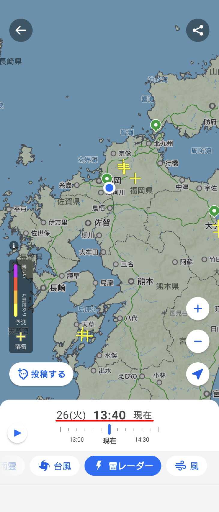 どーしょーかなぁ、と悩んでました。ええ、今も逡巡して居ます。遠くでは、雷の音が……、上を通り過ぎていくという感じでは無く、遠くの方で移動している感じです。で、決断します。雨雲レーダーを100%信用はしてないけど…、なんか…、イケそう…。でね、13時頃は凄かったんだ。(今は14時チョイ前)夕方のように薄暗くなって、木々を雨が叩く音が凄くて…。都会人が初めて聞くときっとビビるよ。地面(アスファルト)を叩く音より、木の葉を叩く音の方がもの凄いからね。して、今はメッチャ晴れてるぅ…。ものすげぇ急いで発進準備。バタバタ用意して、忘れ物無いか確認して…。あ、持っていく忘れ物じゃ無しで、扇風機とか換気扇とか監視カメラのモニター電源とか、そーゆーヤツのOFFの事ね。で、外に出てみたら……。ありゃ?コリャ1時間内に降るね。福岡の西方向に雨柱が立ってる。でも、今しか無い。今行かないでどーする。実は食料が枯渇している。インスタント物は各種取りそろえてるけど、葉っぱ物を食べたい。バタバタとトゲトゲセットを全解除。白クロ号に乗り込む。でね、前回降りた時に吸盤で貼り付くシェードを両サイドに貼っていました…。運転席側は落ちて、座席の上に……。助手席側は…、後側は取れてて、前だけで辛うじて窓に貼り付いてた…。で、イグニッション…。決断して1時間経っています。そんな、8月26日の15時直前の話です。スクールゾーンはゆるゆると…。ゾーン終わりでも、いつものギャン踏みは出来ずに…、田舎の一本道でも…、前を抑えられ……。いつもよりいっぱい時間がかかって、ドラッグストアに到着…。でね、気に成っていた西方向を見ると…、あっちゅあ~、迫ってきてる…。今見えてる雲は…、赤矢だよ。これ、巨大な雨柱だよ。急げ急げ、傘挿して荷卸しはしたくないぞ。でね、幸か不幸か安い米を見つけました。安いと言っても、随分値上がりしてますけど…。あたしゃ、支援者も呉れる人も居ないので、自分で買います。知ってます?某・国会議員さん、普通はお米って自分で買うんだよ。値上がりすると、切り詰めて工面して買うんだって知ってる?それから、こらぁ岩場(←適宜漢字を入れ替えて下さい)食い物の税金を無くせ。ばぁーろ、オメェもオメェの党もぜってぇ支持してないからな。無策の責任取って、やめっちまえ。ばーたれ。2kgで2400円です。騒ぎになる前は1600円位だったかと…。(無洗米はもともと少し高いです)コレだけを支払って、一旦、白クロ号に運びます。で、店に戻って葉物野菜や卵やら生鮮物を買って外に出たら…。ヤバイヤバイ…、青空が消えてる。それに、めっちゃ雨の匂いがするぅ…。上のレーダー図は、オンタイムの図です。この情報には多少のタイムラグが在ると思いますけど…。上空写真と、レーダー図では位置が違いますねぇ…。あぁどうしよう。ヤツが話しかけてくる。こんな事してる場合じゃ無いのに…、あはははは…、オレ、中毒患者だから……。ま、今の所コーラは合法だから…。車の運転にあったって、血中糖度を測ることになったらメチャヤバいけど…。北欧の国だったと思うけど、国の命令でお菓子・甘い物を平日に食べちゃイケないらしい。週末だけ食べて良いと言う法律(?条例かも??)があって、違反は罰金刑らしい。国民の肥り過ぎを危惧して、法律で糖分の摂取を制限しているのだとか…。凄いね…。ここまでやる国ってあるんだ。※(日本だと精糖会社からの献金が減る)日本の国会議員さん達、この国の議員さんの爪の垢貰って来なよ。あんた達、自分の身が可愛いから絶対そこまでしないよね。※(国民より貰える金が大事だからね)酒飲んで車を運転して、人を死なせたら…、それは刑事罰の殺人罪でしょ。遣っちゃイケ無い事して、他人様の命を奪うのだから故意の殺人です、事故なんかじゃありません、道交法の範疇を超えてますよ。日本の法律って、犯罪者に凄く甘いからね。一体人の命を何と思っているんだろう…。軽犯罪でも米国みたいに3アウトで終身刑似するべきだ、いや2アウトで終身刑だ…、それに、性犯罪者は初犯で禁固刑でしょ。親告罪じゃ為しに、そう言うことをするヤツは“癖”だから、きっとまたする。弁護士が腕を変に振るうと執行猶予で世の中に出てくる。癖なんだから、出しちゃダメだよ。弁護士も自分の娘が襲われたらとか考えないのだろうか…。性犯罪者は、兎に角1度塀の内側に入れて生活態度と反省の具合を見て、それから仮釈放で残りを執行猶予にするべきだと思います。※未だにあのアイドル事務所のヤツを“さん”付けで呼ぶのに違和感を覚える、ヤツは性犯罪者だろ、個人間は示談でも社会的には呼び捨てでイイと思うぞ。で、先日の事件だけど、初めて街で見かけた女性を自分の好みだから襲うとか、言語道断。過去に同じ様なことをして逮捕歴まであるヤツらしいじゃ無いか…、そんなん親は堪らんぞ。初犯できっちり反省させてない。反
