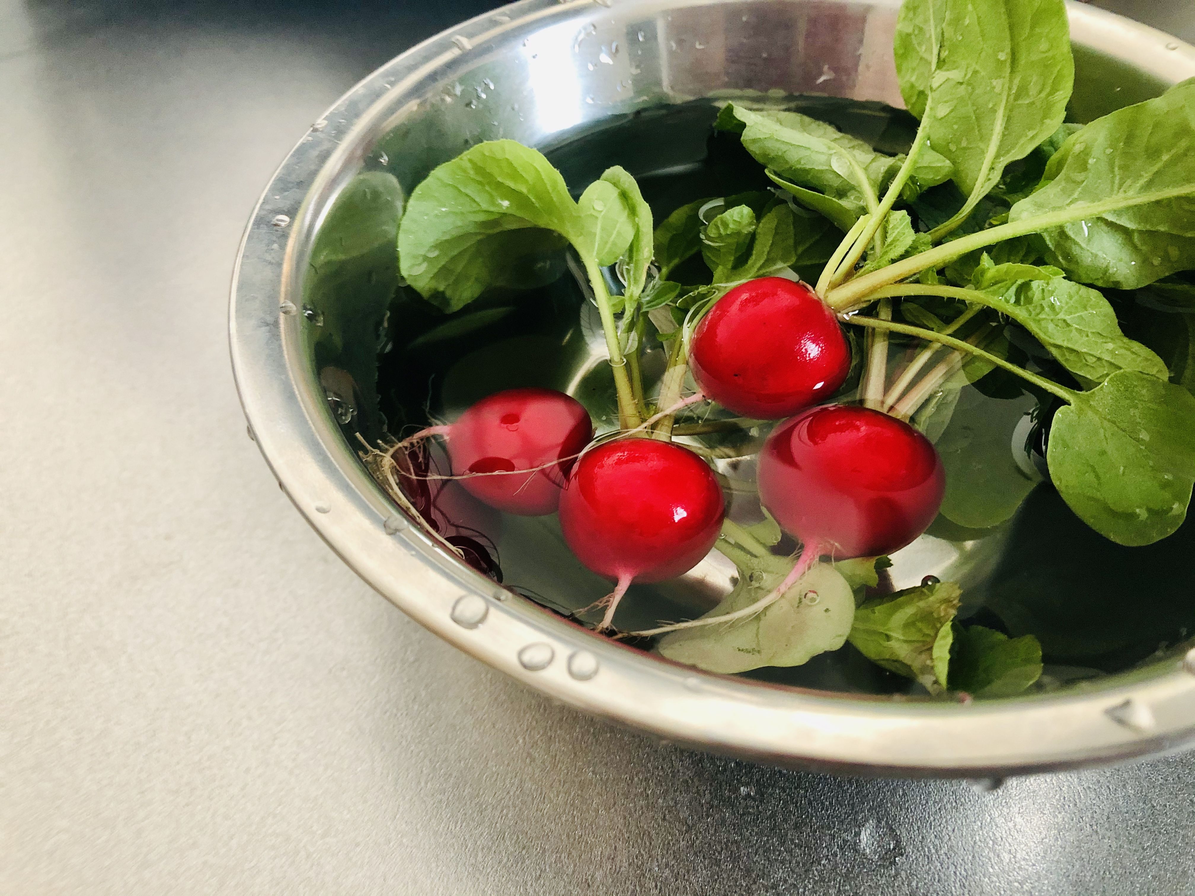 プランターで育てていたラディッシュが採れました!じめじめ暑い日が続いていますね。Cocoですラディッシュはとっても簡単に家庭栽培できます。別名「はつか大根」と言い種から植えて20日~1か月ほどで収穫できるスピード野菜です♪徐々に丸くて赤い実が土から見えてきて 引っこ抜く瞬間がクセになるそんな収穫を楽しめるラディッシュです。ラディッシュは 根の部分だけでなく葉っぱも食べれます。ビタミンCが豊富で、サラダに入れると色鮮やかになりますねとにかく簡単にできるので ぜひ試してほしい野菜です。Coco