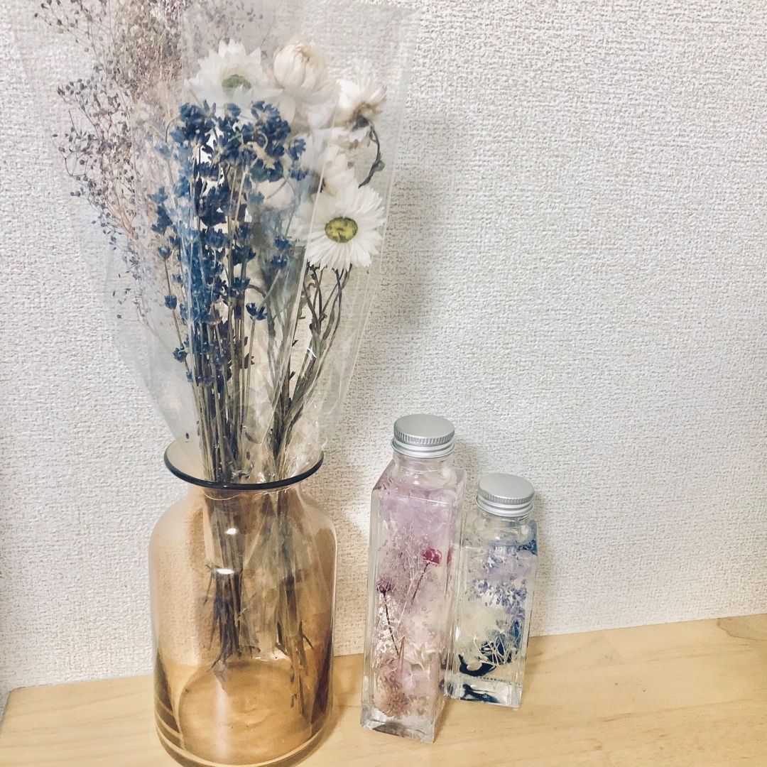 お気に入りのお店で買ったドライフラワー。色んな種類があって悩んでしまいました。ドライフラワーの良いところと言うと、生花に比べ長く楽しむことができる所ですよね!なんとも言えない味がある、素朴さ。そして寒くなってくると存在感が増してくるような気がする…このアンティークな雰囲気が大好きです。スワッグにして吊るすのもいいし、シンプルに花瓶に飾ってもカワイイ。花好きには堪らないものがあります♪この間、ハーバリウムを作ってみました。<作り方>1. 熱湯で瓶を乾燥殺菌させる2. ピンセットで花材を入れる3. 専用オイルを入れて浸す4. しばらく放置し、気泡を抜いてから蓋をするという簡単なもの。今回は手芸屋さんで材料を選んでみました。花材を入れるときにコツがいるなー・・・・1個目は勢いで作ってしまって、思うように花を入れることが出来ず。。最初にデザインをよくイメージしてから作るといいみたいです!色んな角度から色んな表情が見れるので光にあたると色が変わっていい感じ。ハーバリウムキットもあるのでまた挑戦したいです。Coco🍀