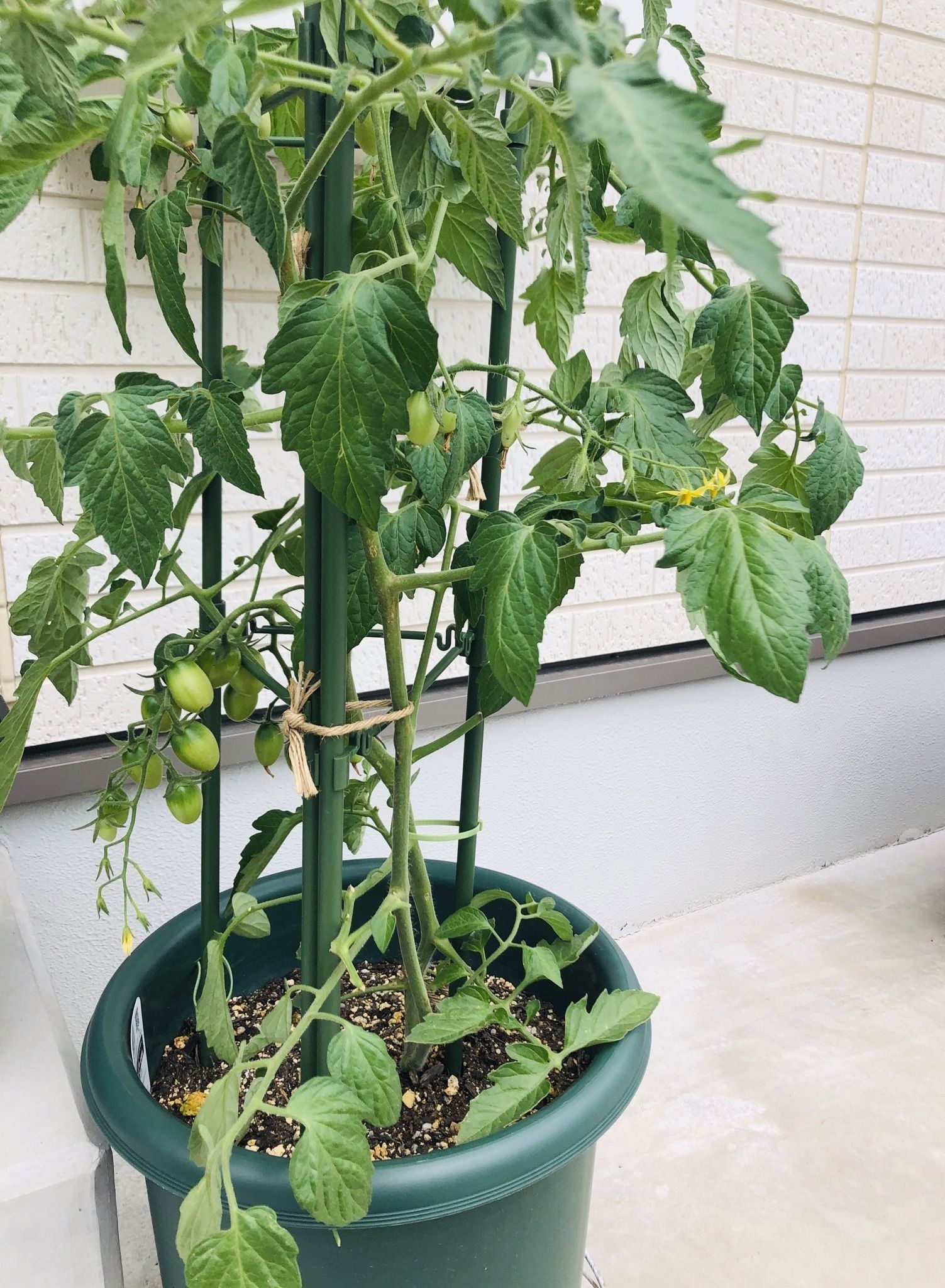 ミニトマトが順調に育っています。こんにちは、Cocoですこちらは「アイコ」というプラム形の品種。病気に強く作りやすいと言われています。植えてからどんどん成長して、実が沢山ついてきました♪わき芽が出てきたら、とるのが基本らしいですが夫からの要望で 所々わき芽を残しておきました。なんと わき芽からミニトマトって増やせるらしいのです。私ははじめて知りました(笑)こちらが 水耕栽培で わき芽から育て始めたミニトマト。カエルが遊びに来ていました。思わぬ来客にほっこり。水耕栽培だと土に比べて育ちにくいのかと思いきや・・最近になり ぐんぐん成長しています!!実もなってきています夫が色々と調べて、水耕栽培に向いた肥料を使っています。水耕栽培は土に比べ栄養が少ないため、肥料も大事のようです!しっかりと下調べする、深く掘り下げていく、こういう部分は見習いたいと常々、思います。今年の夏はミニトマトだらけになりそうです。収穫が待ち遠しい(^^)Coco