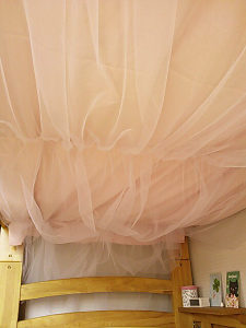 和歌のベッドまわりです。天蓋風に見えますか?もう少し手を加えます。