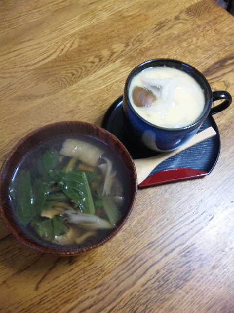 今日は、書きたいことがいっぱいです。では、まず今日の午前中は、4月からの保育所の入所説明会に行ってきました。1号くんは、先週に引き続き歯医者へ。こっちは、お父ちゃんに行ってもらいました。2号も一緒にね。で、私は3号を連れて説明会に行ってきました。あ~。結構揃えなきゃいけないものがたくさんあるなぁ。名前書きもいっぱいだわ。ちょっとずつ準備していかなきゃ。お母ちゃん頑張りますお昼からは、DVD返却&借りにレンタル屋さんへ。ここで面白い光景をみました。今週も3号がまたまた色々してくれるもんだから、今日は、お母ちゃんは3号に付きっ切り。旦那も自分の好きなの探して・・・。で、1号、2号は・・・というと、ドラえもんコーナーで面白いことしてました。それはですね。2号が四つん這い(!?)になって1号がそれに乗って必死にDVDを取ろうとしているんですよしかも、2号はちゃんと這えてないから、ただうつ伏せになってるだけだし(笑)しかも、二人とも楽しそうでしたよ♪キャッキャッ笑ってました私が「何しよるん?」と聞くと、1号は『1号がゴセイピンクで、2号がゴセイレッドなんよ!!』って意味わからないこと言うし。「ん?・・・???・・・???」なんか前回のゴセイジャーで、こんなシーンがあったらしいんです。こうやって物を取ってたシーンがあったみたいで、真似てしてた2人でした。でも、ちゃんと出来てないから、2号の体の厚み分しか高くなってないし・・・。取りたいとこに手が全然届いてないし、意味ないじゃん(笑)でも、二人で何とかしようとしてる努力は認めてあげるわよく頑張りましたその後、太○家具へウインドウショッピングしに行きました。そこの3階の異国家具のコーナーに、様々な石像や仏像がありまして・・・見つける度に、1号が手を合わせてお祈りしてました(笑)彼は、真顔で真剣ででした。実は、毎朝、通園中の国道にも仏壇店があり、安全祈願の大きな仏像があるんですが、ここの交差点の信号にかかると、いつもお祈りする1号です。今日の夕飯も、旦那が作ってくれました先週も作ってくれたんですが、茶碗蒸しが上手く出来ず失敗に終わりました。そこでリベンジ今日は、ちゃんと上手に出来てましたうどん入り茶碗蒸しです。(左は、舞茸+あげ+小松菜のお吸い物です。一緒にパチリ)こちらもいい出汁が出てて、美味しかったですお父ちゃん、Thank you~!!今日も一日、家族みんな笑顔で過ごせたみつ☆る一家なのでした。☆ランキングに参加してます!!励みになりますので、ポチッとお願いします。 ↓にほんブログ村にほんブログ村