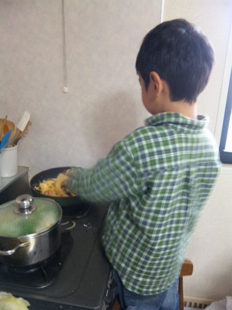 今日は、明日の卒園式の為、お休みでした。なので、朝、旦那を見送って・・・二度寝しました。二度寝万歳~さて、今日は午前中、3人を連れてお出かけしました。雨だったし、個々に動いてくれるから疲れて・・・昼前には帰宅。そこから、子供たちとまったりタイム今日は、散らかろうがどうでもよい感じになってましたよ、お母ちゃん。だから、子供たちもこれでもか~って感じで、すさまじい勢いで散らかしてくれました。今日もお母ちゃん、3号とお昼寝をしました起きたら、そろそろ夕飯の準備をする時間でしたよ急いで夕飯の準備すると、最近、お手伝いを進んでしてくれる1号が、今日も『1号も手伝う~!!』と言ってきたので、手伝ってもらうことに卵を割って、混ぜて、入れる・・・というのをさせました。(フライパンから飛び出さないように慎重にしてます1号くん)将来はシェフかしら???旦那みたいに料理が好きで、できる男にしなくては(笑)今日は、園からの最後のお便りを読んだり、2年間の1号、そしてお友達を思い出して、ジーンと思い出に浸ってたお母ちゃんでした。今日は、ふと気づけば1号や園のことばかり考えていました。お茶を沸かしてるのに、思い浸たりすぎて、忘れてしまうし・・・。園からの書類に、印鑑を押すのがあったんだけど、押さなくていいとこまで押してしまったり・・・。一つならともかく三つぐらいだし。ん???単なる思いの浸りすぎ???それとも、ついに始まったかボケが・・・(笑)今日は、おかしかったお母ちゃんなのでした。明日は、涙涙の卒園式になることだろう・・・。いっぱい泣いてきますおまけ旦那が何を思ったのか、私の服を3号に着せてました。可愛すぎですよくピンクがお似合いで3号よ。そんな目で見つめられたら、メロメロになっちゃうよっお父ちゃんもお母ちゃんも、3号の可愛さに親バカ全開なのでした(笑)いつも読んでいただきありがとうございます。★ランキングに参加してます。★励みになりますので、ポチッとお願いします。足跡変わりにでも是非、ポチッとお願いします。 ↓にほんブログ村