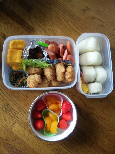 今日は、みつ☆る親子は、サークルのお友達たちとファミリーパークでお弁当持参で遊ぶため、お母ちゃん、朝からお弁当作りに張り切っちゃいました実に一週間ぶりのお弁当作りです。張り切ったといっても、普通のお弁当ですが(笑)(ウィンナー好きの我が子たちの為に、大量のウィンナーを入れました!)今日は、天気予報だと曇りのち雨。降水確率50%と危ういお天気。そんなとても微妙なお天気でも、子供たちの気持ちは、公園で遊びたい!!で、いっぱいでした。行きしなの車の中で、手を合わせて『神様、晴れますように』とお願いしていた1号でした。そのお願いが届いたのか、無事にお弁当も食べて、しっかり遊ぶことができました。1号くん、いつもは園に行っていなかったので、お会いするママ達、お友達みんなとはじめましてでした。1号くん。女の子に優しく、ずっとしっかり遊んであげてましたいつもいい笑顔の1号くん(にわとりが鳴いているのを聞き、鳥小屋の中を必死にのぞき込む子供たち)2号は、1号と一緒だったので、元気いっぱい。(顔が・・・ちょっぴり怖そうw)いつものクールな男の子ではありませんでした(笑)何度も会っているママに『初めて2号くんの声聞いた~』なんて言われましたよ。確かに・・・そうかも・・・それくらい1号がいると、変わってしまう2号くんなのでした。必死に1号の後を着いて回ってた2号くん。途中、見失ったらしく…荷物の置いてるところに戻ると、鼻水ジュルジュルの目に涙いっぱいためて泣いておりました『お母ちゃ~~ん』って泣いてたらしいです。そんなことが起きてるとは知らず、お母ちゃんは、3号と孔雀を見にいってました。3号は、いつものように一人放浪の旅に。我が道をゆくって感じです。(歩くの大好き!!)ここのファミリーパークは、公園内に鹿がいたり、孔雀がいたり、遊具も大きくていい公園なんですよ3号は、鹿に孔雀に興奮『あ~あ~』と指差して楽しんでました今日のお昼は、お外でみんなと一緒お外で食べるお弁当って、美味しいですよね(二人見つめてます。こんな姿見たら、可愛くて仕方ないです!!)(楽しそうな3号。落ちないように手を添えたら、離せと嫌がられました)(お友達のお兄ちゃんと仲良くお菓子タイム。途中、僕のものごとく奪って持ってましたよw)帰りは、車に乗ってすぐに3号が爆睡眠たいの我慢して遊んだもんね。続いて、2号くんが眠りの世界へいっぱい遊んだし、泣いちゃったのもあるし疲れちゃったよね。もう、うちの駐車場まで100メートルのとこで、イビキをかいて寝てしまった1号くん。年下の女の子の面倒を見て一緒に遊んでたし、いっぱい遊んだから疲れちゃったかな?お母ちゃん、駐車場に着くなり、子供たちを家まで運ぶはめになってしまいました結局、荷物運びも含めて、駐車場から家を往復4回行き来したお母ちゃんなのでした。でも、よくあることなので、「またか~」とちょっぴり平気になっちゃってるお母ちゃんがいたのでした。今日は、親子共々楽しい時間を過ごせてよかったです今日は、雨ももちこたえてくれて、楽しく過ごせたみつ☆る親子なのでした。いつも読んでいただきありがとうございます。★ランキングに参加してます。★励みになりますので、ポチッとお願いします。足跡変わりにでも是非、ポチッとお願いします。 ↓にほんブログ村