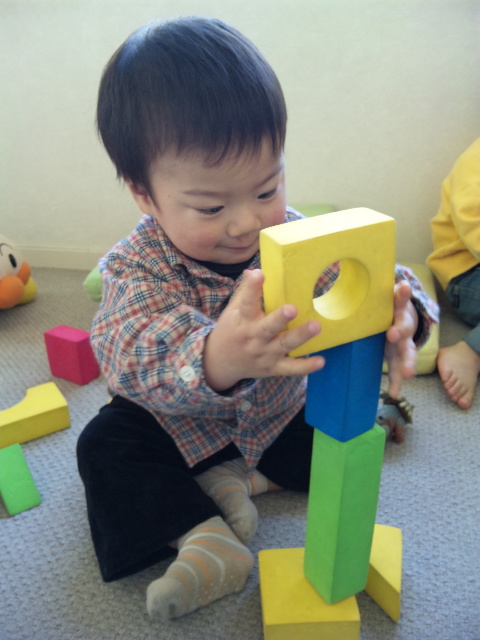いつも読んでいただきありがとうございます。★ランキングに参加してます。★励みになりますので、ポチッとお願いします。 ↓にほんブログ村今日は、待ちに待ったベビママの日。いっぱい体動かせるとあって、朝からなぜかウキウキなお母ちゃんでしたテンション上げるため、今日も朝から大好きなAIの曲を聴きながら、1号を送りました。毎日、1号の送り迎えにAIの曲を聴いているので、子供達も覚えてくれました(笑)なので、一緒によく口ずさみます♪今日は、AIのYOU ARE MY STARを1号と熱唱しましたお互い気分も上々窓全開で熱唱する親子。はたから見れば、何なんだこの親子は?って感じだったことでしょう(笑)まぁ、お構いなしで歌う親子でした1号を園に送り、お母ちゃんと2号、3号はそのままフィットネスジム目指してGO!今日は二人ともお名前呼びは、無反応親子の触れ合いも、2号がご機嫌ななめで…ろくにできませんでした途中、2号がスタジオから飛び出すし・・・お母ちゃんにかばん投げつけたりするし・・・。3号を理由もなく押し倒すし・・・。お母ちゃんの怒り度がアップでも、コーチに助けてもらいました。私の友達であるコーチには、2号くん気を許せたようで・・・おとなしくムギュ~してもらってました。その後、私の元へ戻ってきた2号に、お母ちゃんは気持ちを抑えて、笑顔で触れ合いして、ギュッて抱きしめて…褒めましたよ。無理矢理ですが(笑)すると、2号がかばんを投げて当たった私の腕をなでなでしてくれました。そんな波ありの前半でした。後半のエアロは、ハードでしたこのコーチの日は、いつもハードです。お母ちゃん、途中から足が思うように動かなくなっちゃいました。でも、笑顔も忘れず何とかついていきました。今日も声もこれでもかぁ~ってくらい出しました。スッキリ~(これは、午後に行った歯医者にて~待ち時間に積み木ブロックで遊ぶ3号)一生懸命、一人で積んで遊ぼうとしてます。可愛い~~~~~~~親バカですみません。今日も楽しい時間を過ごし満足なお母ちゃんなのでした。