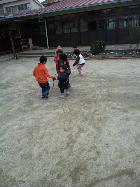 今日は、1号の個人懇談の日でした。うちの園の個人懇談は、参観日と同様、朝から子供と登園をし、一緒にご飯を食べて…と、その日一日子供と一緒に過ごします。そして、その日の子供の様子を見て、それを踏まえて懇談でお話するようになってます。参観日より長くなるので、親子共々疲れます。今日は2号、3号を預けることが難しく、お昼ご飯を家で食べてからの参加にしてもらいました。普段もお迎えの時間が早いので、早いお昼ご飯なんですが、今日はさらに早く食べて園へ行きました。教室に入ると、まだほとんどの子がお弁当を食べてる最中でした。みんなして『1号くんのお母さ~ん』『2号ちゃ~ん』『3号ちゃ~ん』と迎えてくれましたもちろん1号も『お母ちゃ~ん』って満面の笑みで迎えてくれましたお昼ご飯食べ終わった子供たちと思い切り遊びました。『1号くんのお母さ~ん』と呼ばれれば、可愛い園の子供たちの為に、張り切りましたよ鉄棒で遊んだり、電車ごっこしたり、縄跳びしたり、お店屋さんごっこしたり、お買い物に行ったり、一緒に総合遊具に上ったりして…。楽しかったです。2号も3号もみんなに遊んでもらって嬉しそうでした。(黒のダウン着て遊んでるのが3号。その横のオレンジのパーカー着てるのが1号です)(右下のグレーに紺のフードのパーカーを着ているのが2号。3号もちゃっかり最前列キープ)そうそう。今日、私に向かって『せんせ~い』って呼ぶ子もいたりして…(笑)一瞬、先生気分を味わっちゃいました確か去年は入園したての園ママさんに『先生ですか?』とか『体育の先生か何かしてたの?』って間違えたり、声かけられたことあったなぁ(笑)私って見た目は体育会系なのかしら???今日は先生と約2時間、お話させていただきました。この二年間の1号をよく見てくれているなぁと、改めて感じました昼からの参加とはいえ、普段思いっきり外で遊ぶことのない2号、3号は、今日は思う存分遊んだので、疲れたのか帰りの車に乗ったとたん眠りについたのでした私も、帰って横になってたら寝てました・・・。今日は、昨日の疲れが残ったままでスッキリしなかったけど、みんなの笑顔を見て疲れが和らいだ感じがする母ちゃんなのでした。☆ランキングに参加してます!!励みになりますので、ポチッとお願いします。 ↓にほんブログ村にほんブログ村
