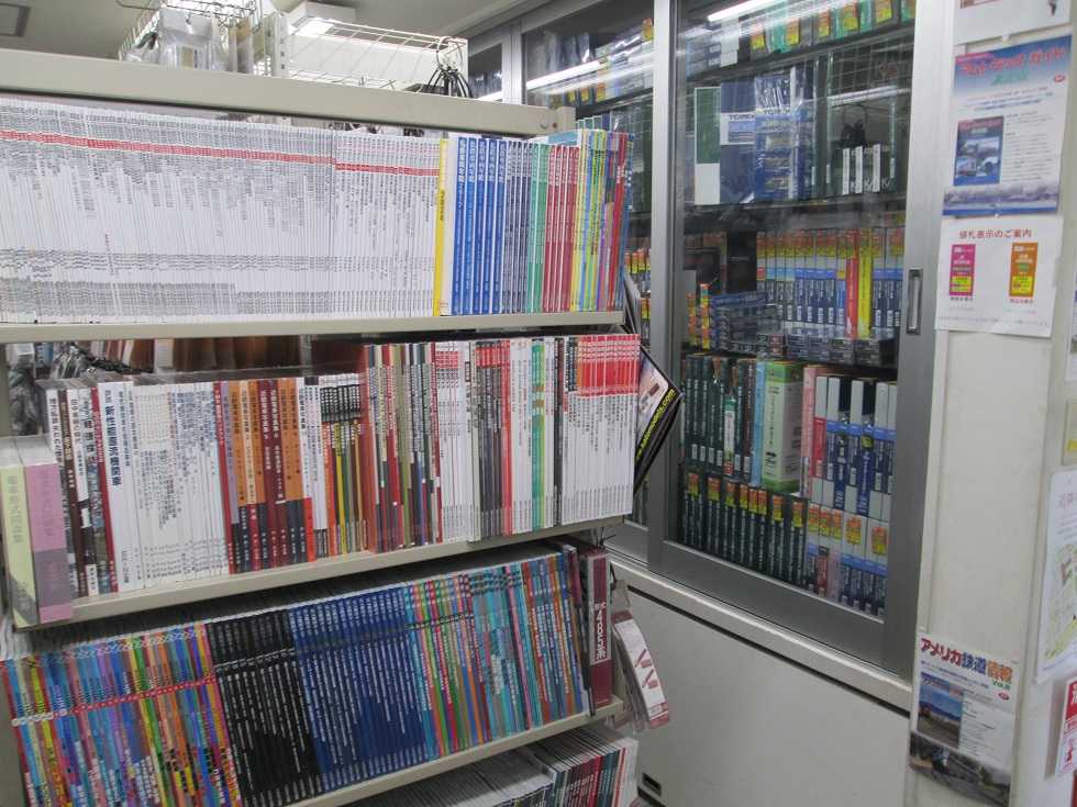 1階にある機芸出版社、イカロス出版など書籍は特集版中心に充実しています。ビコム、テイチクなどのDVDやブルーレイもあります。