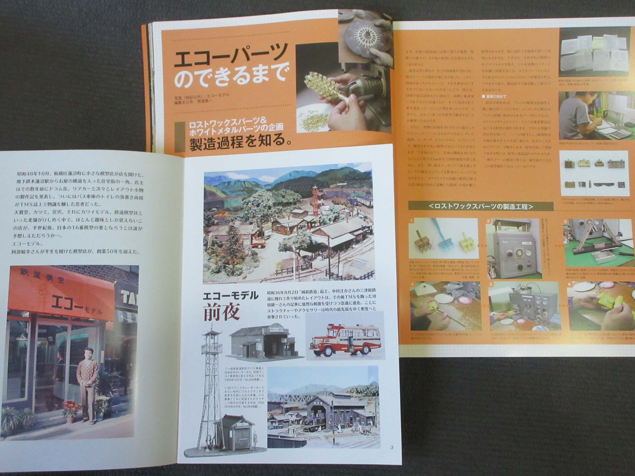 阿部さんとエコーモデルを理解するために現在販売中の 「鉄道模型ひとすじ50年」 の総合カタログを兼ねた記念誌(税込3,960円)や TMS2024年8月号の抜粋リーフレット