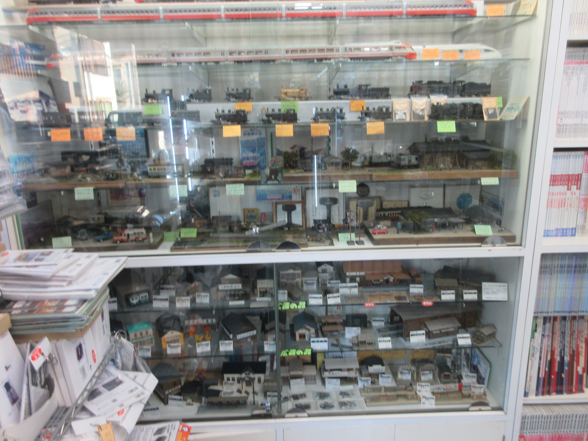 私はここまでのHO商品量のお店は見たことがありません。昔のマッハ模型やつばめ模型店をはるかに超えています。阿部さんの「何でも揃い、品切れがなく、買いやすい店」という経営方針がまさに実践されています。