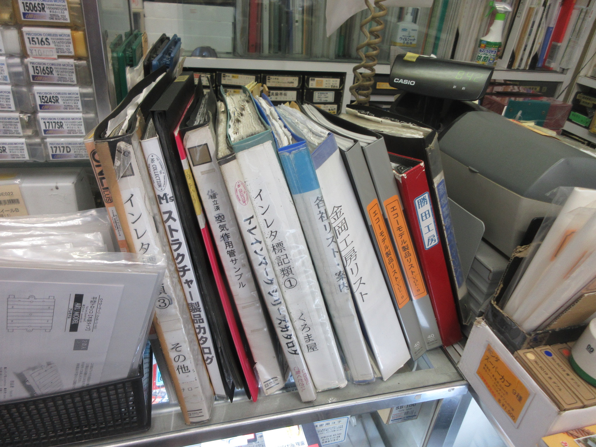 店頭には直接仕入れているメーカーカタログがずらりと並んでいます。皆さんはどれだけご存知ですか?最近は3Dプリンターのガレージメーカーも増えているので、恐らく直接発注仕入れするのは大変かと思います。