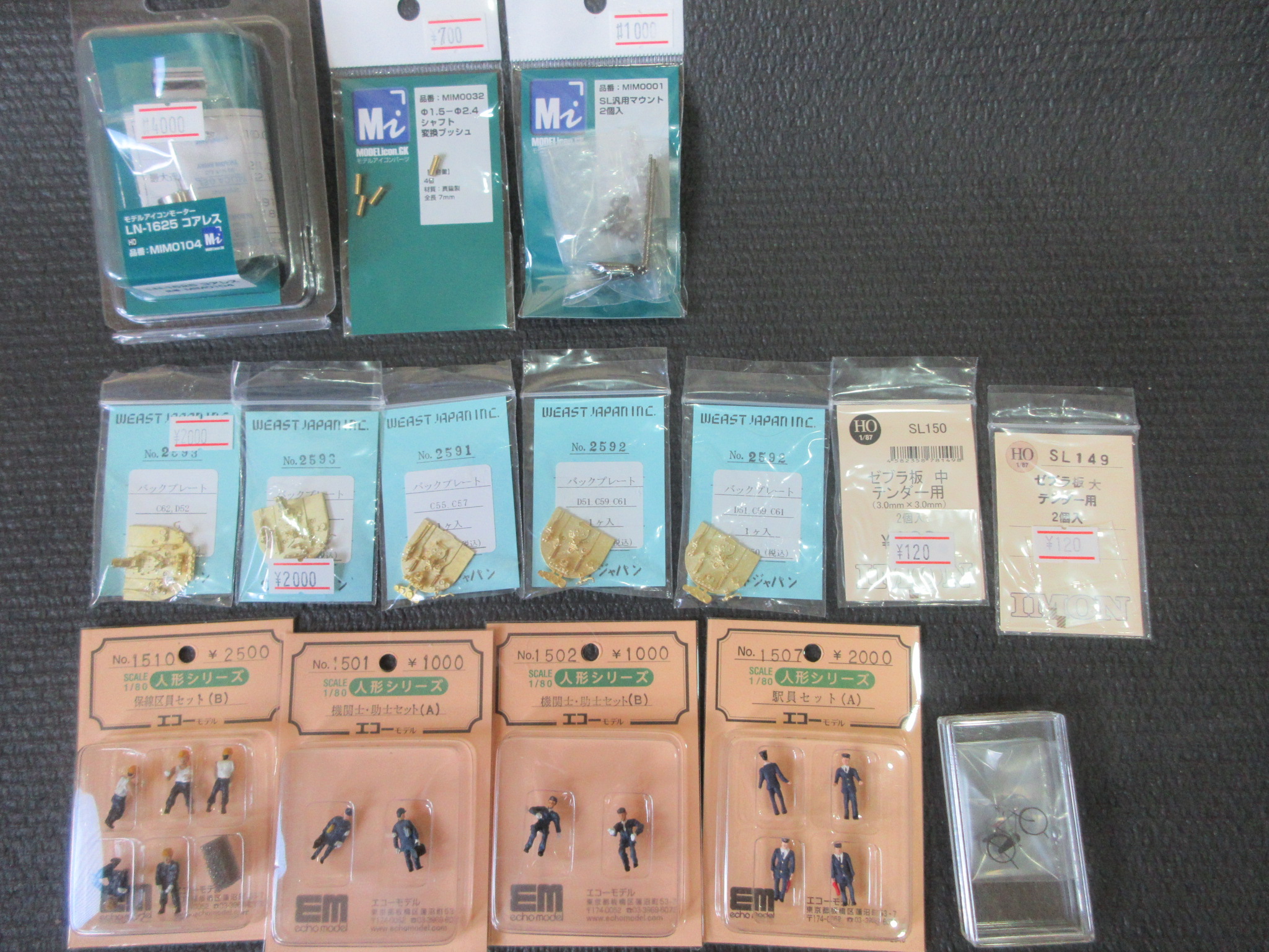 ​今回、お店に伺って今までの疑問が氷解し、改めてEKO MODELが「HOマニアの桃源郷」であることを確信​ しました。社長の阿部敏幸様や店員の方々とお話し、店内を見せていただいただけでなく、実際、色々な欲しい部品のことをお聞きしながら、下の写真のように全部で15点、3万円ばかり買いました。