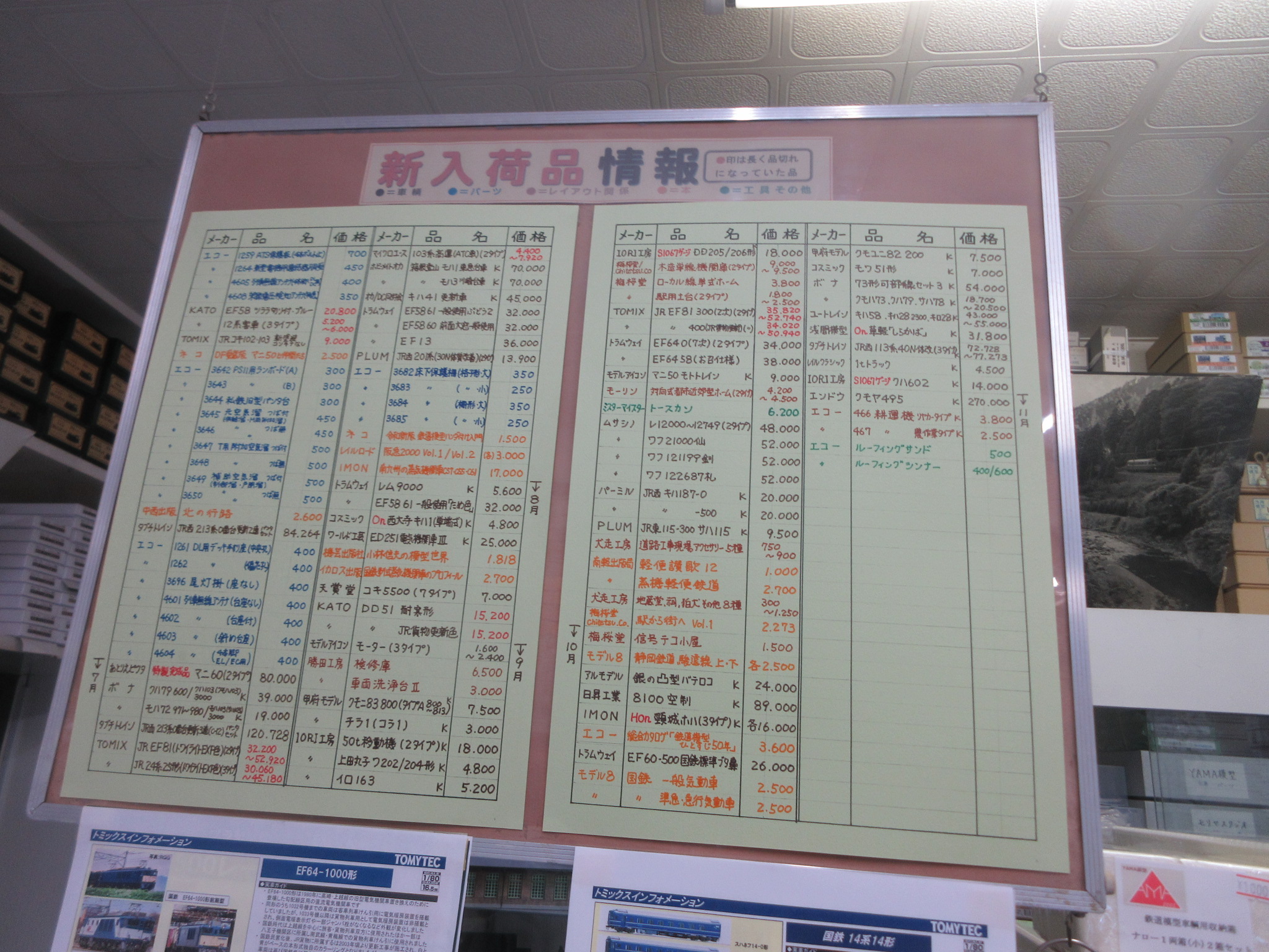 店内に入ってすぐに掲げられた新製品入荷情報です。