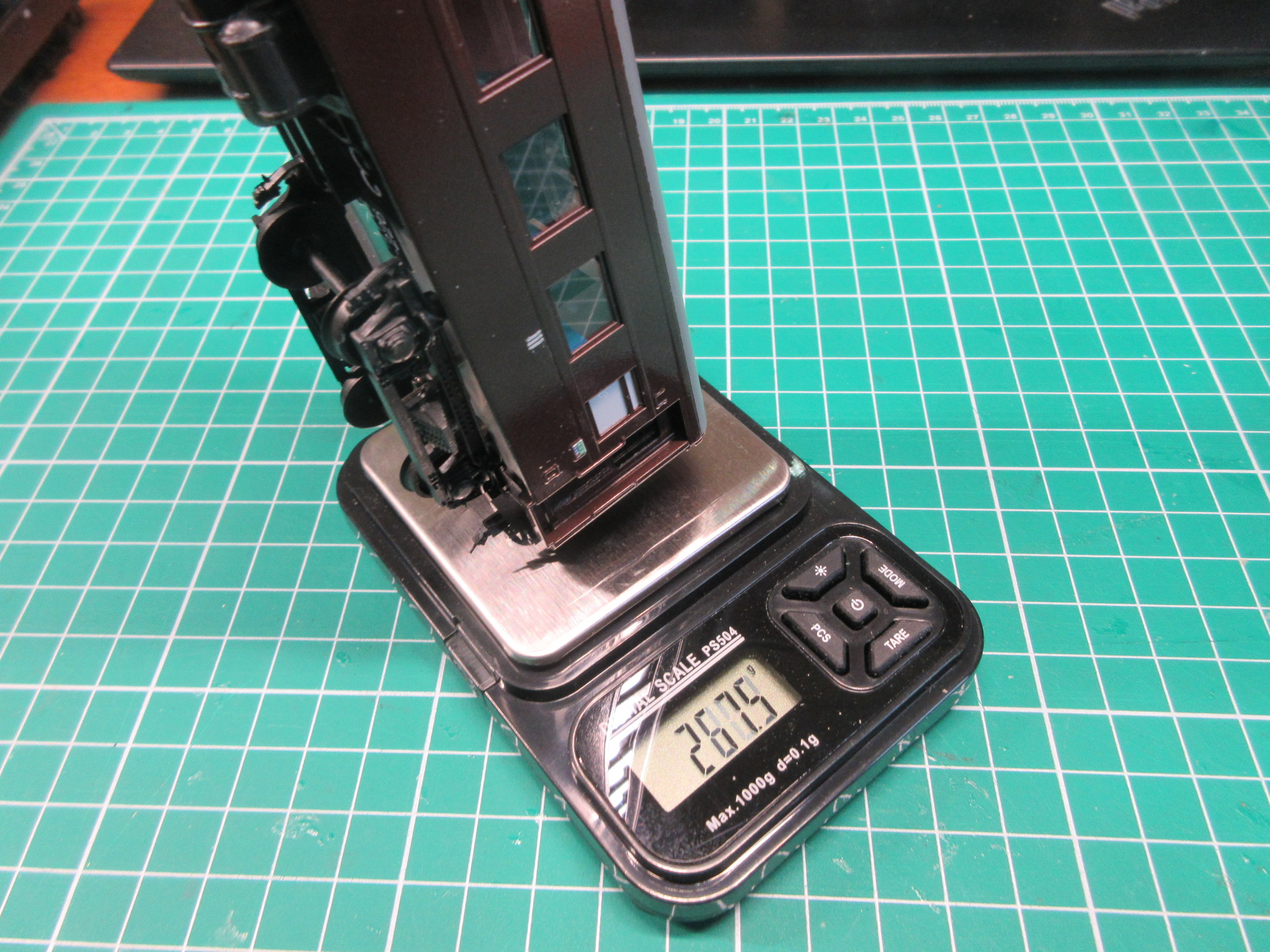 ただ、ボイラーの細いC57にはモーター交換前にすでにウェイトを55g増量している