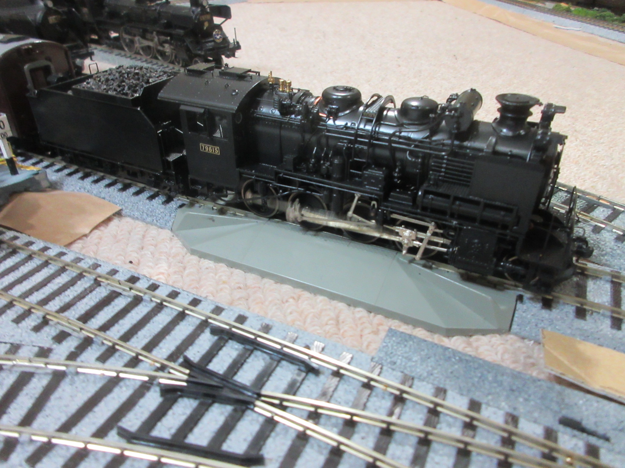 始動時に少しだけ実機同様、空転するものの、ブラス製軽量客車7両を無事牽引できました。