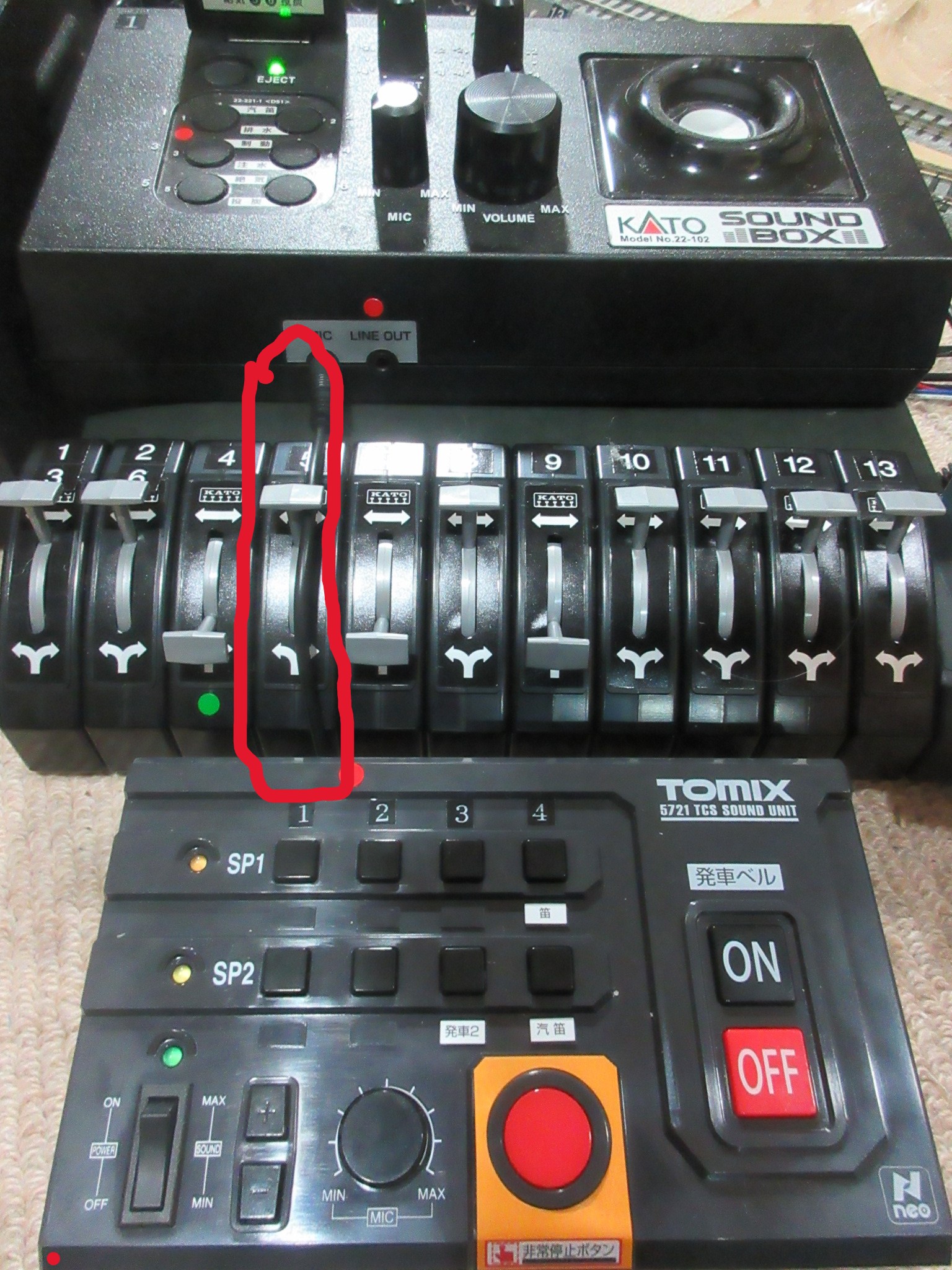 なお、別稿のように、本線、ダブルリバース線の電圧差問題はサウンドBOXを2台にしてSTART(起電圧調整)ボタンで調整するようにしています。