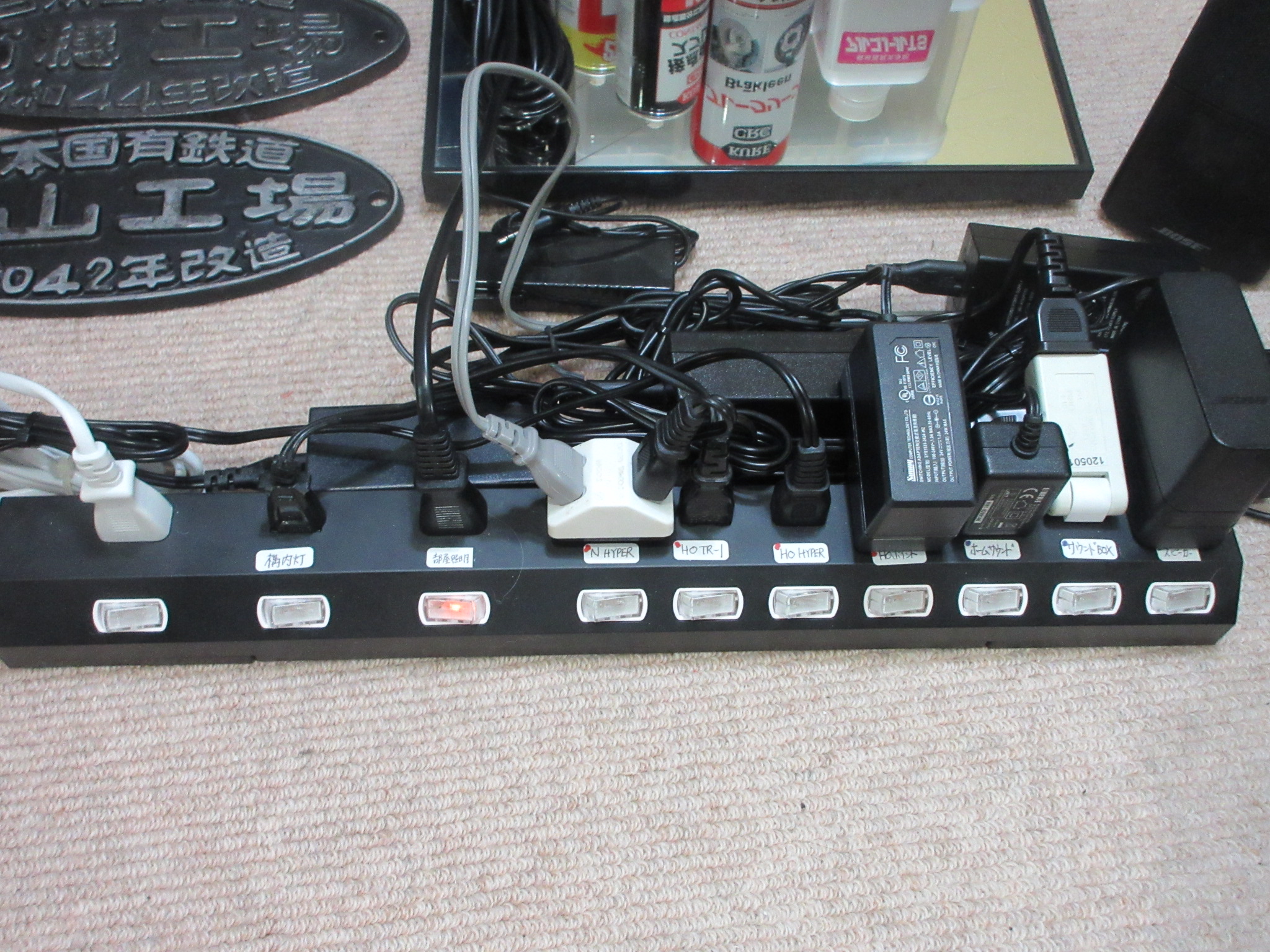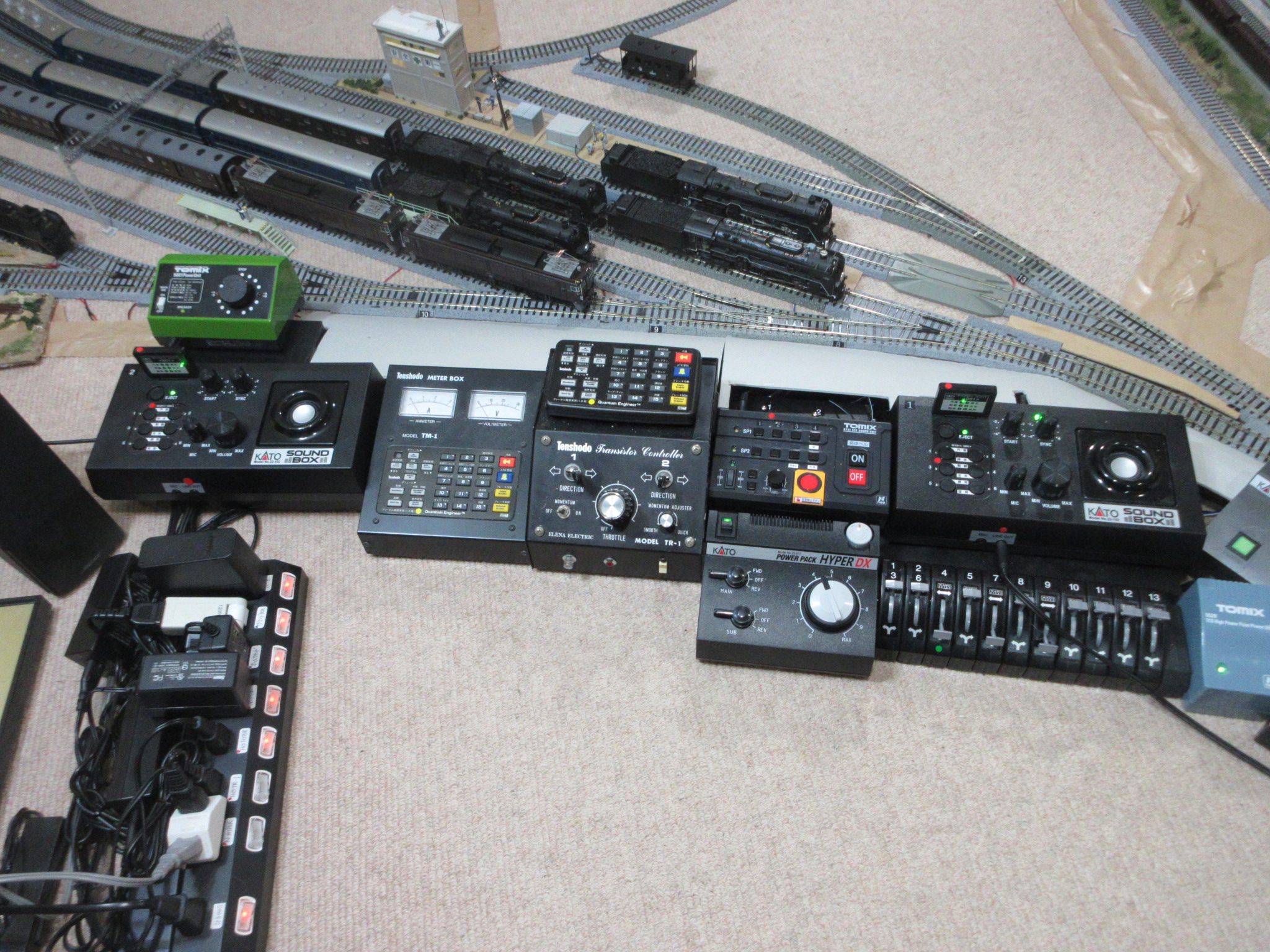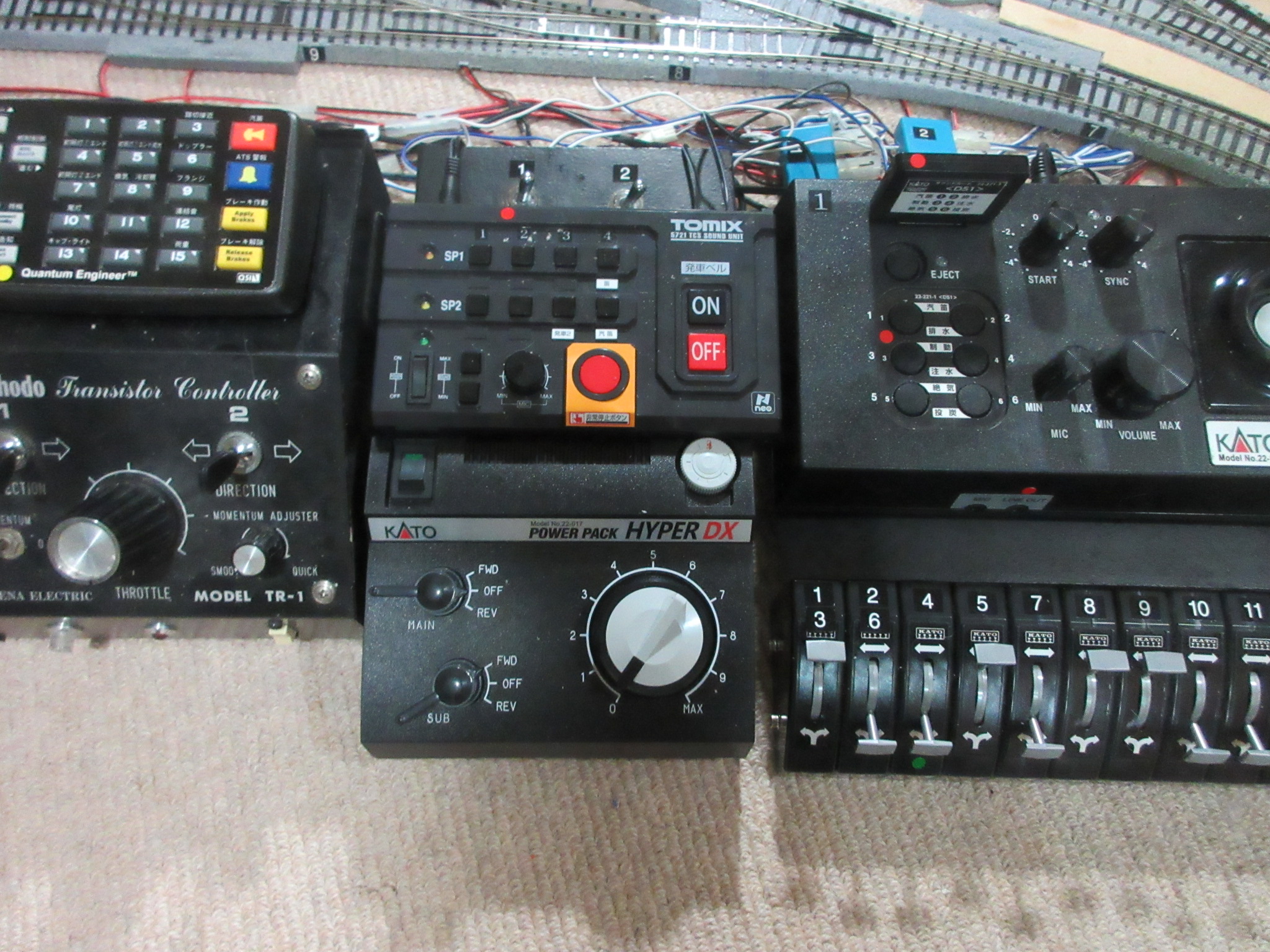 HOゲージ側の当初の機器構成です。この写真のあと、機関区の電飾用電源を追加し、さらにポイント動作の改善用にTOMIXのハイパワー電源を導入していました。
