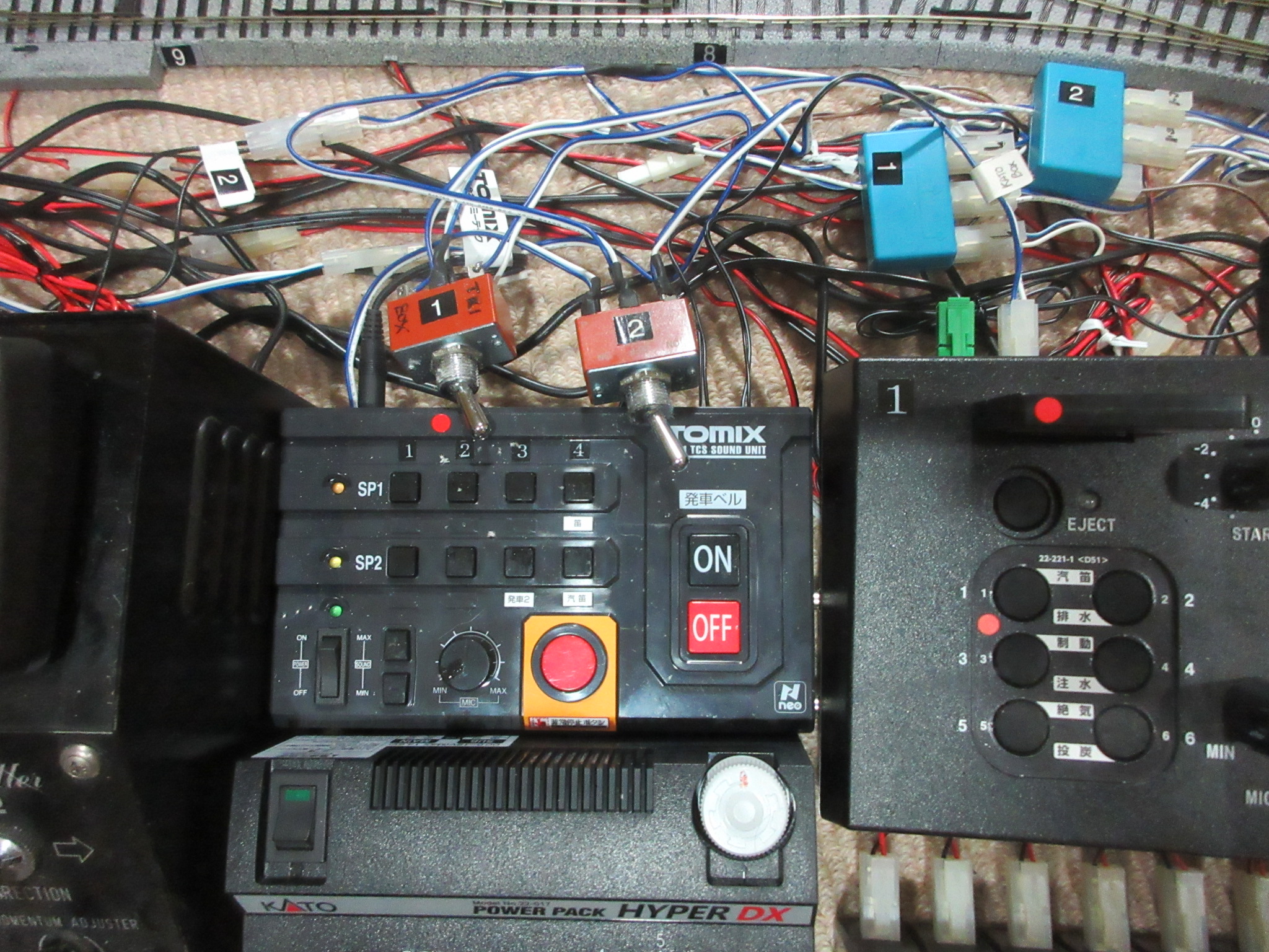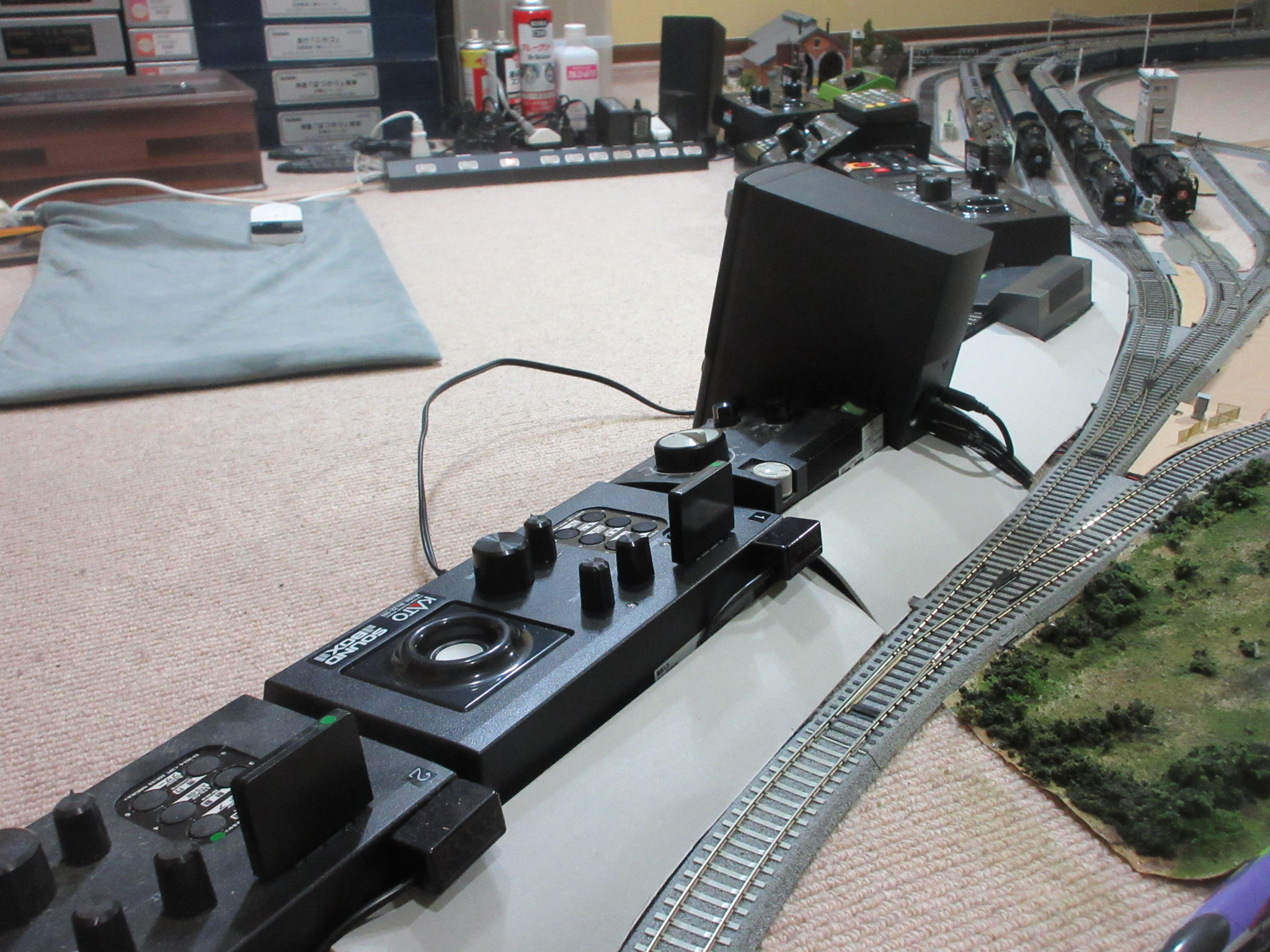 長編成列車やC62三重連など運用負荷が上がって来て、リバース線や渡りクロスのポイント2基を同時動作させると、サウンドBOXが停止するトラブルに見舞われるようになり、結局パワーパックをKM-1に分離独立