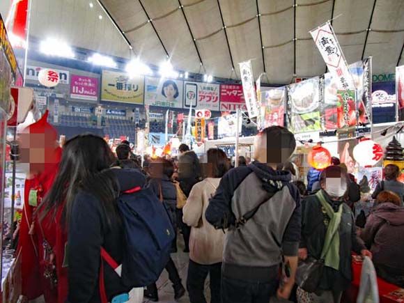 温かい穏やかな天候に恵まれた1月16日午前11時15分前頃、私達は東京ドームに到着致しました。東京ドームにて「ふるさと祭り 東京 2020」立て看板の前にて目指すは「ふるさと祭り 東京 2020」の会場。チケット売り場は長蛇の列。私達は既にネットでチケットを購入済みでしたので、会場入口20番ゲートに並びました。こちらも長蛇の列で、所持品検査もあり約15分後に入場することが出来ました。パンフレット会場案内図真っ先に赤印の「お祭り広場」へ直行しました。ステージでは最初のお祭りショーが開催中でした。秋田県羽後町の「西馬音内盆踊り」観客も加わって盛り上がる盆踊りステージ上手飾り 煌びやかな山車ステージ下手飾り ねぶた「秋田竿燈まつり」 待機する出演者達午前11時50分より開演されました。一斉に立ち上がる10本の竿燈大若(高さ12m 重さ50kg 提灯の数46個)中若(高さ 9m 重さ30kg 提灯の数46個)とのことです。掌で支える演技額で支える演技腰で支える最も難しい演技ステージ上段の囃子方肩で支えながら中央へと集まる演技観客との歓談タイム約20分間、お囃子に合わせて次々と繰り広げられる力技の妙技に、感動致しました。