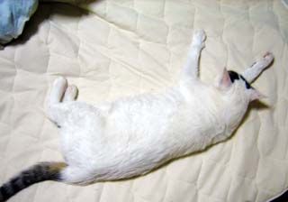 白(ハク・生後6カ月頃から飼い猫になる)8才ご近所の家の縁の下で産まれ、この辺りを生活圏にしていた仔猫でした。5~6カ月の頃わが家の飼い猫の仲間入りをしました。家猫になりたての頃 (2012. 9.25.)ダンボール箱が大好き (2012.11. 7.)サンルームで寛ぐ白 (2012.11.18.)丸くなって寝る白 (2012.12.23.)◆好きな場所家の外日長1日元気に外を駆け回っています。私の膝の上寝室の枕元にあるベッド白は敏捷な猫で狩りが上手です。時々鳥やネズミを捕まえてきて、私を驚かします。迷惑を顧みず夜中にびしょ濡れで帰宅することも度々で、自由奔放に行動しています。甘えん坊のおしゃべり猫で、「帰ってきたよー!」とか「戸を開けて!」「ここにいるよー!」「体を拭いて!」「膝に乗りたい!」等「ニャーン」ではなく「イヤーン、イヤーン」と聞こえる甘えた鳴き声で頻繁に意思表示をします。4匹の中で最も面倒を掛ける猫なのですが、「モー、いけないんだから!」と思いながらも、甘えた鳴き声で寄ってこられるとついつい許してしまいます。