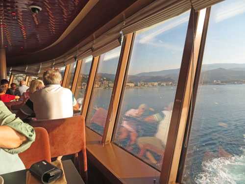 5月11日(日)の午前中約2時間は、Tさんは豆にお洗濯をし、持参したワイヤー製のハンガーにかけ、ベランダの椅子の背につるして乾かす。私はベッドに横たわり休養する。昼 食ディナー時のレストラン「オリヴィエート」へ向かう。ところで私達の部屋は船の前方にあり、レストランは各階の後方にある。食事毎に約250mの距離を往復しなければならない。私達にとっては結構な距離で、毎回ウォーキングの運動をしているようである。12:30 営業開始と同時に、違った雰囲気の奥の席へ案内される。昼食はコース料理である。ナイフとフォークコーラ:Tさん用白ワイン:私用前 菜パスタパ ンメインデザート昼食中のTさん昼食中の私どの一皿も、生クリームをたっぷり使っているようなこってりとした味わいである。港の風景を眺めながら、90分ゆったりとお食事と語らいを楽しむ。サボナ港