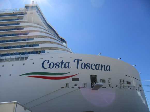 威容を誇るコスタ・トスカーナ船首