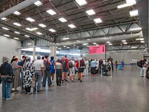 クルーズ客専用のバスに乗車し、桟橋へと向かう。