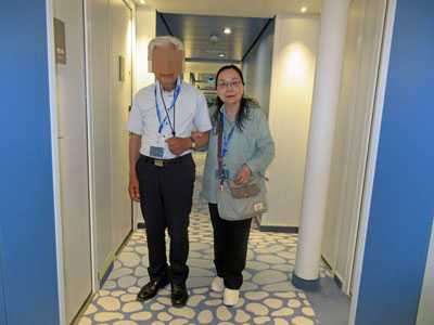 船中の通路にて