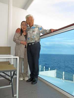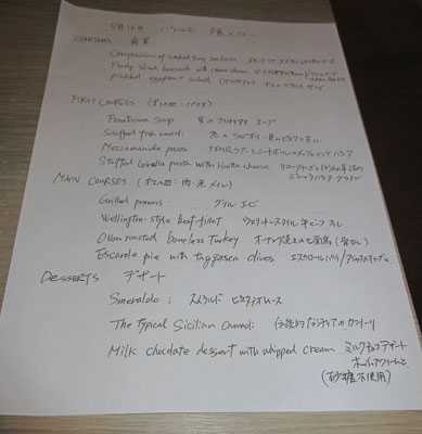 5月13日(火)ディナータイム18:45~ 「L'OLIVETO」にて◎この日のコース料理をご紹介致しましょう!パン:2人前前 菜(3品より1人1品選択)シーフードサラダ第1の皿(4品より1人1品選択)イノシシ肉を詰めたラビオリパスタ/ポルチーニとマッシュルームと自家製ラグーと共にシチリア風めかじき角切りとミントのフリッジパスタ第2の皿(4品より1人1品選択)サーモンフィレ/マルタ風ソースとイカのタリアッテレと共にローストビーフフィレ肉ステーキデザート(3品より1人1品選択)ゆずとパッションフルーツのクリームかけ/ココナッツメレンゲの焼き菓子マダムシュークリーム(ピスタチオ入り生クリームとチーズの焼き菓子)ドレスコード:赤と黒「皆さんどんなファッションをされているのか?」と、興味を持ち、モデルになって頂く。新婚カップル - 1笑顔が愛らしい!新婚カップル - 2こぼれ出る幸せいっぱいの笑顔が素敵!現地で購入されたという、大活躍の「OHTANIのユニホーム」そして最高齢カップルの私達「ハートマークを作るのよ!」と、煽られるが、何分にも初めてでうまく作れない!(大笑い)自室に戻り、ベランダにてセルフタイマー撮影を試みる。「アララ、頭が切れてるー!」「逆光で上手く撮れない!」室内に移動して、記念撮影。やっと良い記念写真が撮れる。