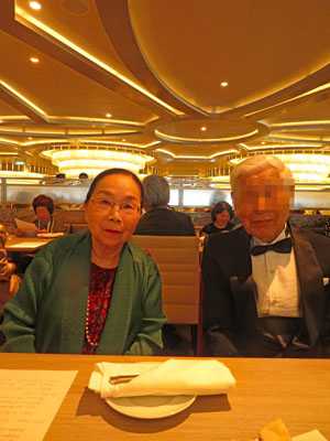 5月15日(木) 18:45 ~ ディナータイムドレスコード:エレガント時間をかけておめかしし出席する。この日のコース料理をご紹介致しましょう!前 菜パ ン初めて違ったパンが加わる。主 菜リゾット風エビ入りスパゲッティこちらのエビもとても美味しい!Tさん注文の魚料理デザート会食中の私達乾杯!食事を終えると、7組の新婚さん達を祝うセレモニーが行われる。お祝いケーキ幸せ一杯のN家の方々7組の新婚さん達に、「末永くお幸せに!」の言葉を贈る。プロの写真家による記念写真