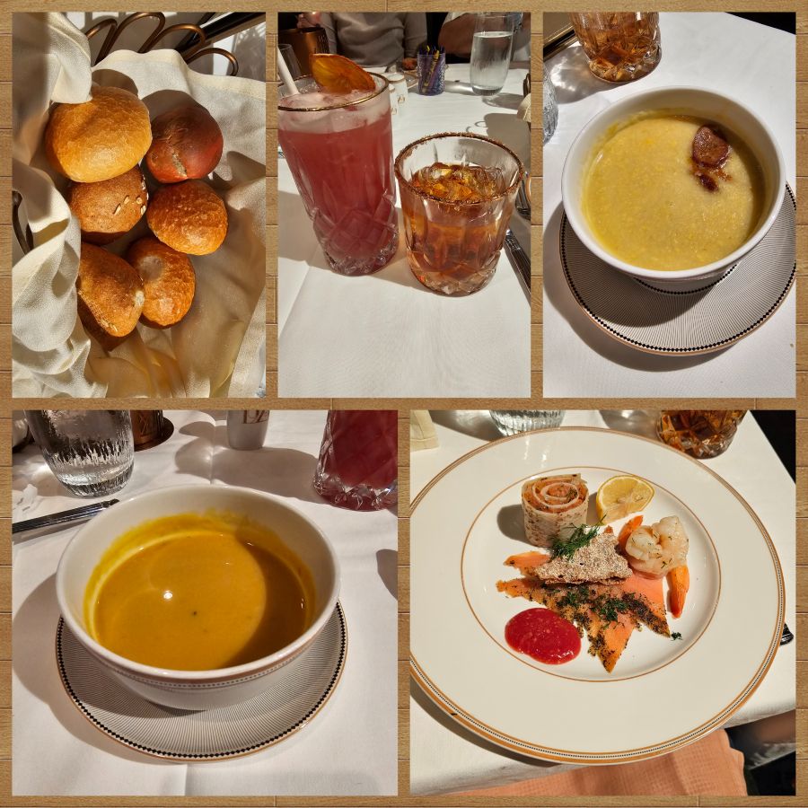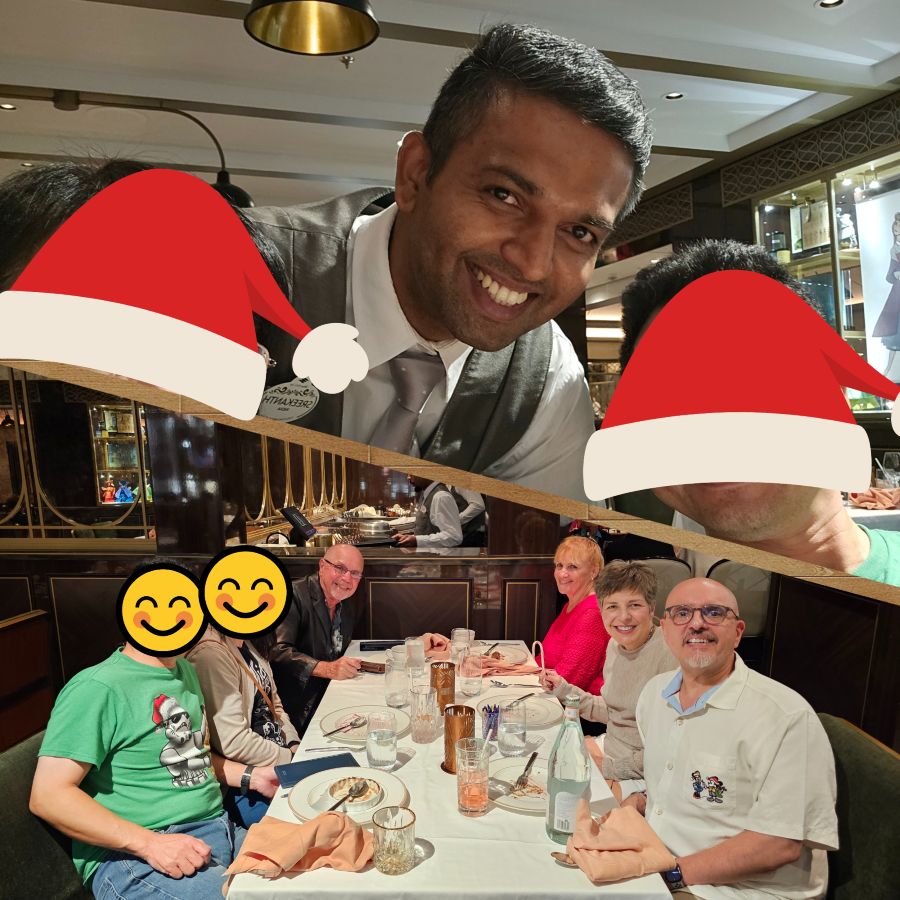 食事後、ローテーションダイニングで、同じグループだった人達と写真。手書きハート