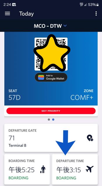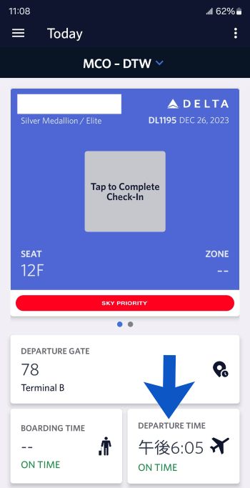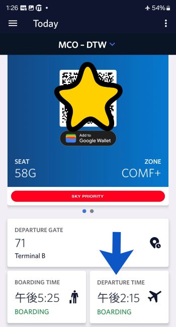 12:46発の飛行機に空きがあったから変更しようと思ってたけど、