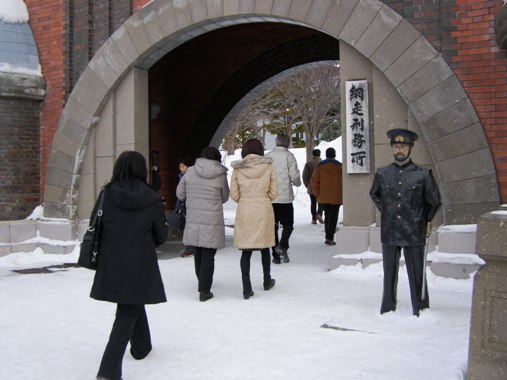 sobajin が現職時代、東京三鷹にある消防大学校へ入校したときの同期会を、網走市で開催しました。消防大学校は全国から集まり、専門知識を学ぶところで、同期会も全国持ち回りで開かれています。今回は、北海道地区が2回目の開催となり、sobajin たち3人が幹事を勤めました。九州や関西からの同期生が、空路女満別空港に到着、しばらくぶりの再会を果たしました。参加者の今回のねらいめはもちろん「流氷」と「カニ料理」、そして、映画「網走番外地」でおなじみの「網走監獄」。本物は見学とはならないので、宿の近くにある「博物館網走監獄」へ出かけることにしました。博物館とはいえ、当時の建物を移設した施設、同期生たちも興味津々のようでした。 展示物などはご紹介できませんが、すべて初めて見るものばかりで、貴重な体験 ? でした。外の様子など載せておきましょう。 いまの刑務所が宿の部屋から遠望できました。博物館の中にもいまの刑務所の中の様子が展示されていましたが、暖房も完備され往時と比べると比較にならないほど改善されているようです。 いよいよ、懇親会です。お目当てのカニ料理、皆さんに喜んでいただけたようです。 メニューは、ゆでた毛蟹とズワイカニの盛と、タラバの酒蒸しがメイン。カニつみれ入りの鍋、締めはカニ雑炊でした。 遠来の客は、口々に「美味しい、美味しい !」満足してもらえたようです。二次会は、幹事部屋で、紋別の Y 氏が用意してきてくれた、トバや魚介乾物、ナチュラルチーズなどで夜更けまで盛り上がりました。訂正です。 昨日アップした「オオワシ」の画像ですが、「オジロワシの幼鳥」であると、野鳥の撮影を得意とする sobajin の弟から連絡がありました。訂正いたします。