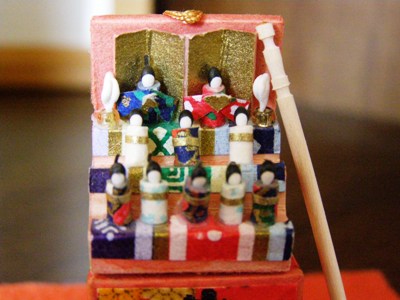 昨日に続いてお雛様です。これはとてもとても小さなお雛様。誰がこんな小さなお雛様を作るのでしょう。手先がよほど器用な方なんでしょうね。sobajin には到底まねができない作品です。下の写真は、爪楊枝と比較してみました。