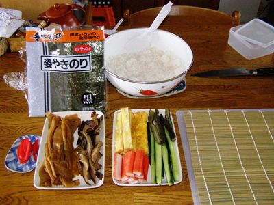 sobajin の町は今朝の気温が氷点下21.1度まで下がりました。立春を迎えたというのに各地でこの冬一番の寒さに見舞われました。「しばれフェスティバル」の行われる同管内の陸別町は、なんと氷点下30.7度、まさに鼻毛も凍る寒さです。昨夜は、恵方巻を食し、豆撒きもしたのに、悪さをする「寒気鬼」は退治できなかったようです。昨日は sobajin 恵方巻に挑戦、そして、巻き寿司も作りました。以下は、その奮闘記です。まずは恵方巻。丸かぶりで願い事をしながら食べる……、切ってはいけないとのことで短めの寿司にしました。 ジジ・ババ二人ですから恵方巻だけでいいくらいなのですが、具にする干瓢やシイタケをたくさん作り過ぎたため、普通の巻き寿司も作ることにしました。 どうですか、なかなかのできでしょう。恵方巻を食べたら巻き寿司のほうは入らなくなりました。それにしても、西南西を向いて、寿司にかぶりつく姿は吹き出さずにはいられないものですね。(爆)お互いに笑いをこらえるのに必死でした。sobajin は、蕎麦打ちだけではないというところをご披露しましたが、ふだんでも、お刺身の盛り合わせなどで「なま海鮮太巻き」も作っているんですよ。これまた結構豪華にできあがります。いずれまたご紹介します。昨夜の巻き寿司、朝食べてまだお昼まで残りそうです。