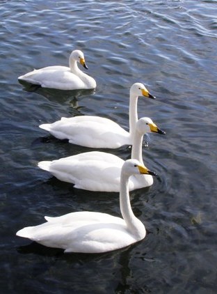 流氷砕氷観光船オーロラ号を下船して、女満別空港へ向かうという、兵庫県篠山市のO氏夫妻と一緒に立ち寄ったのが「濤沸湖の白鳥公園」この地で越冬するオオハクチョウをみて、O氏夫妻は大喜び、流氷とともに観光資源となったオオハクチョウの姿をご覧ください。 タンチョウの求愛行動は知っていましたが、オオハクチョウも同じような行動をするのですね。 ここでもハクチョウの餌として、パンくずを1袋100円で売っていました。餌を与えている人はほとんどが中国や台湾からの観光客でした。管理された給餌はともかく、観光目的の餌やりを止めることはできないのでしょうか。気になるところです。